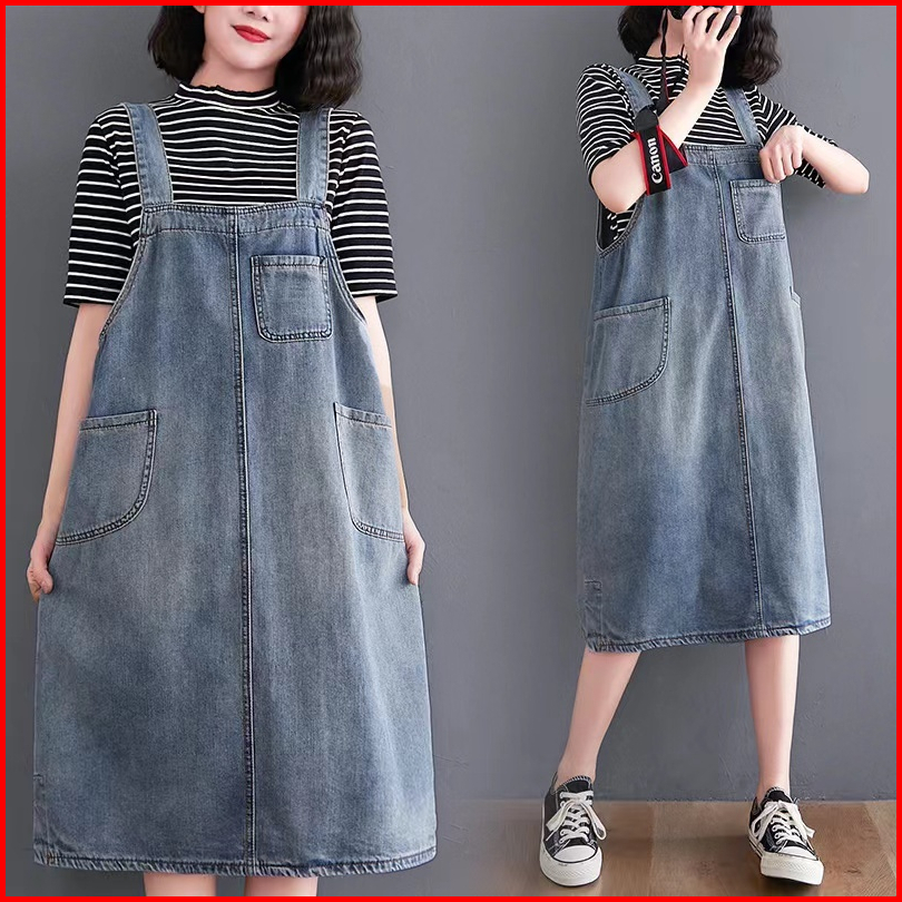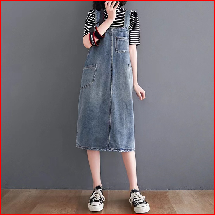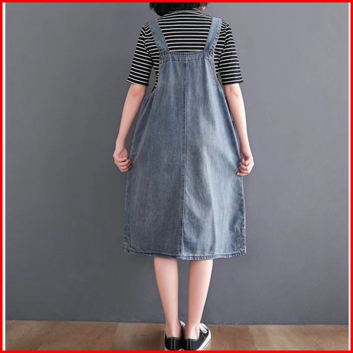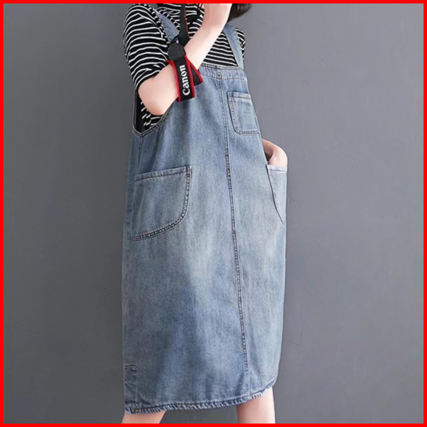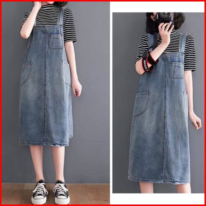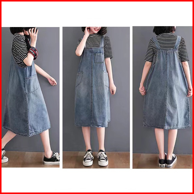 Boll.idoverall Jeans Jumbo Korean Style Wanita Rok Suspender Terbaru A Line Panjang Overall Dress Jumsuit Rok Jeans Wani