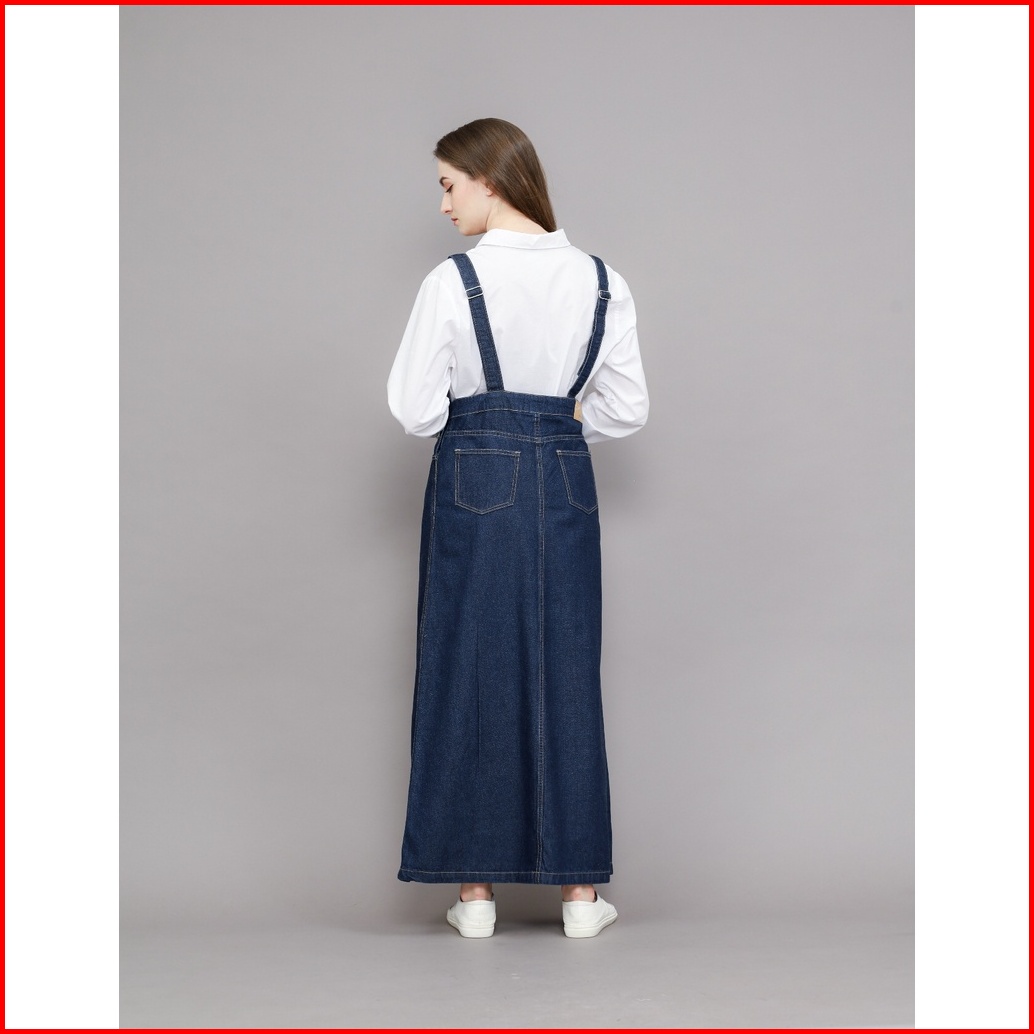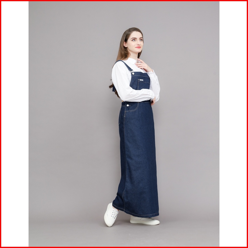 Jeansiro Overall Rok Panjang Jeans Wanita 109ols23001520 Dark Blue
