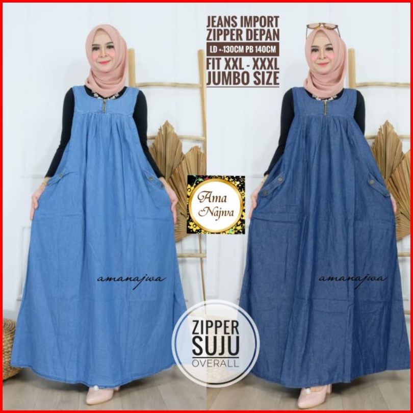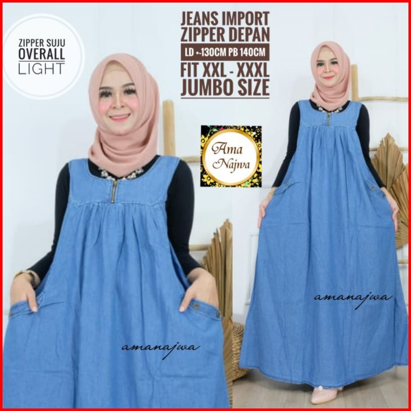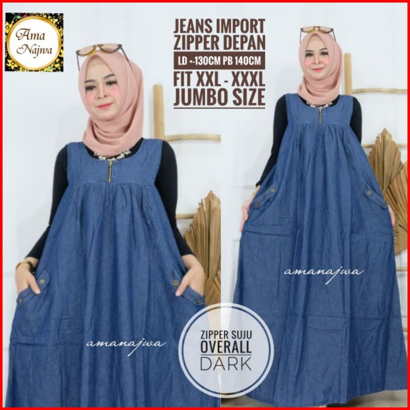 Promo Overall Jeans Super Jumbo Size Xxxl Ld 130cm Zipper Depan Aktif Bahan Adem Nyaman Recommended