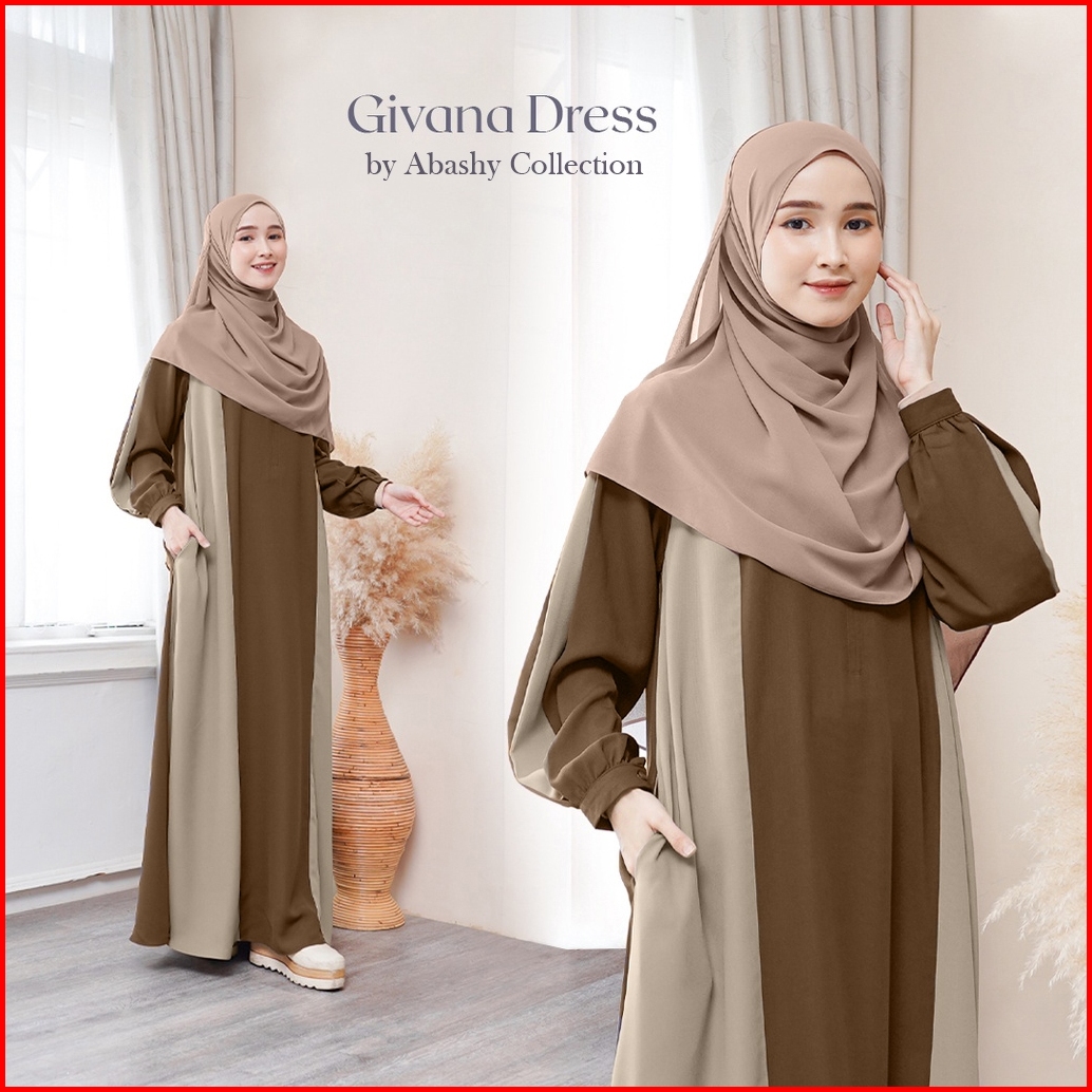 Abashy - Gamis Terbaru Givana Dress Gamis Wanita Dewasa Remaja Overall Dress Kekinian Syar I Muslimah Warna Hitam Machia