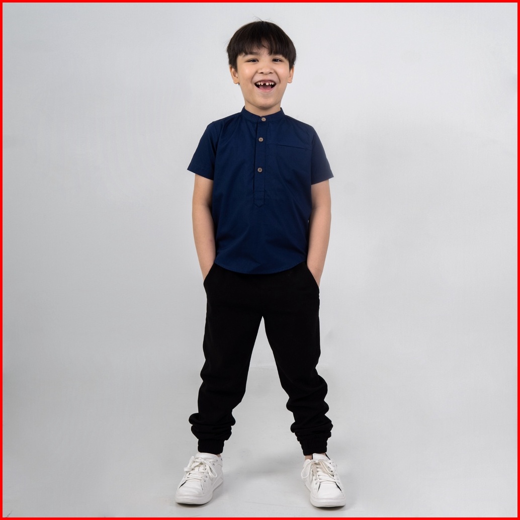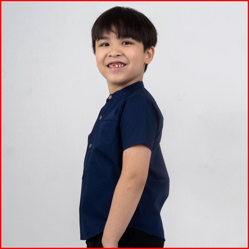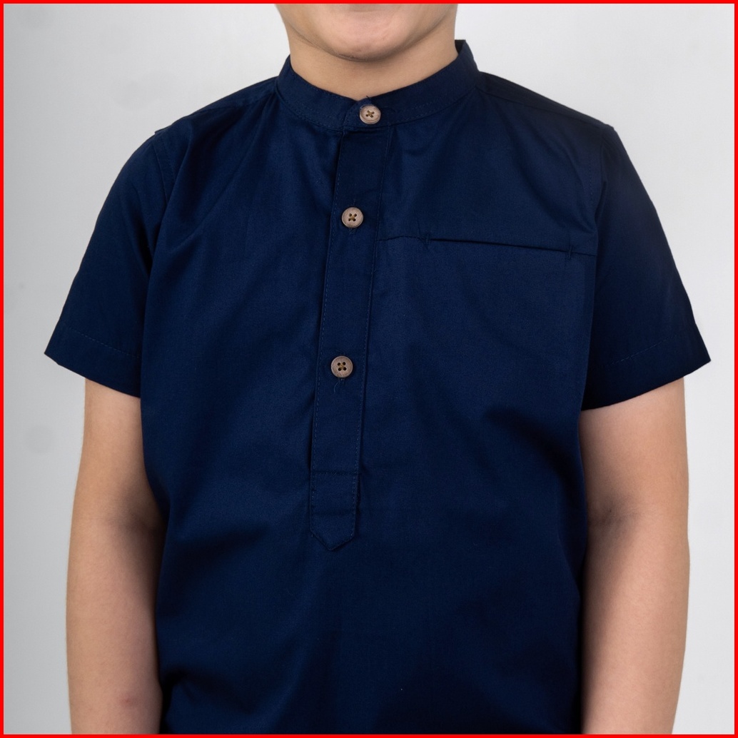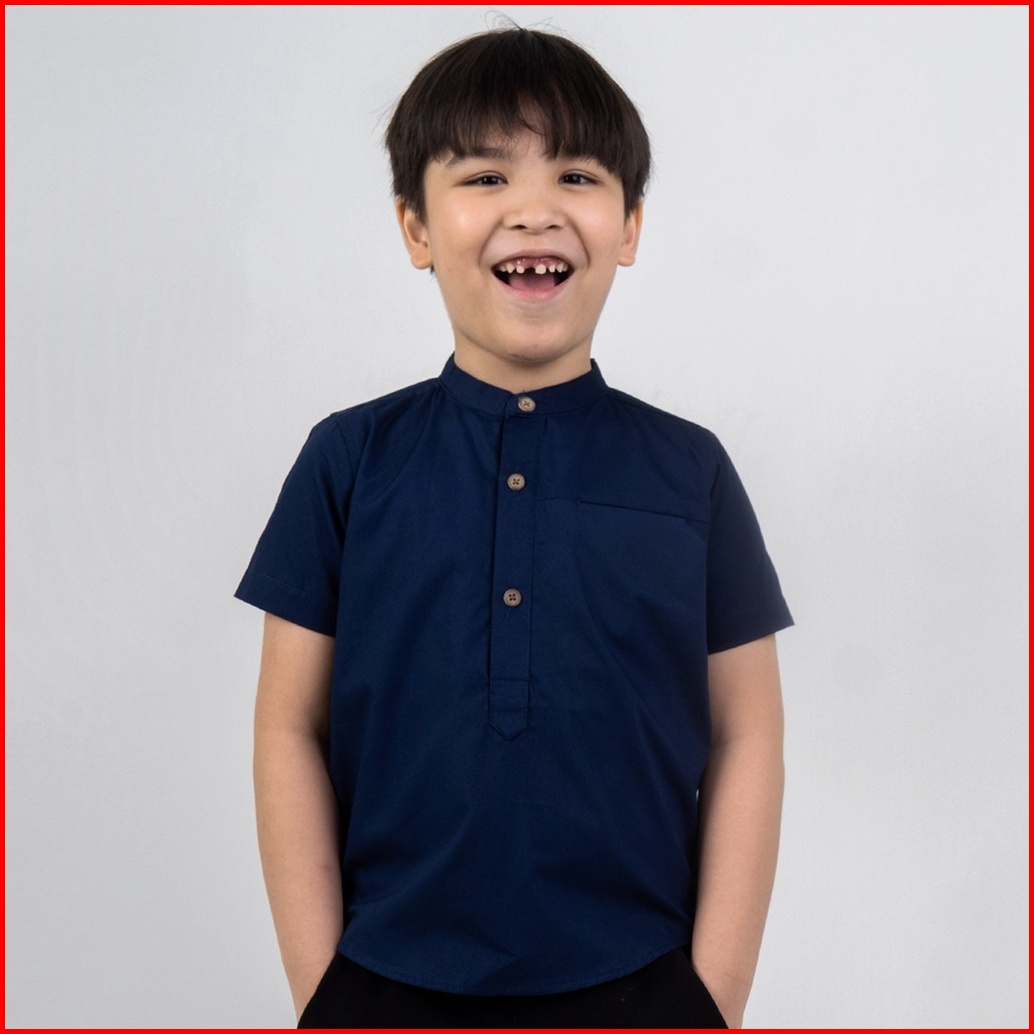 M231 Kemeja Anak Laki Laki Koko Shanghai Polos Pendek Navy 2217c