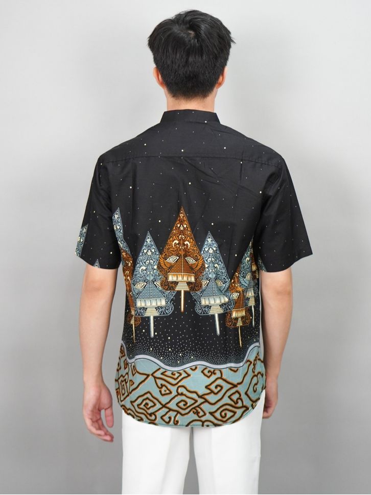 Kemeja Batik Pria Modern Lengan Pendek Wayang Laksmana Black Swipe Up Terbaru