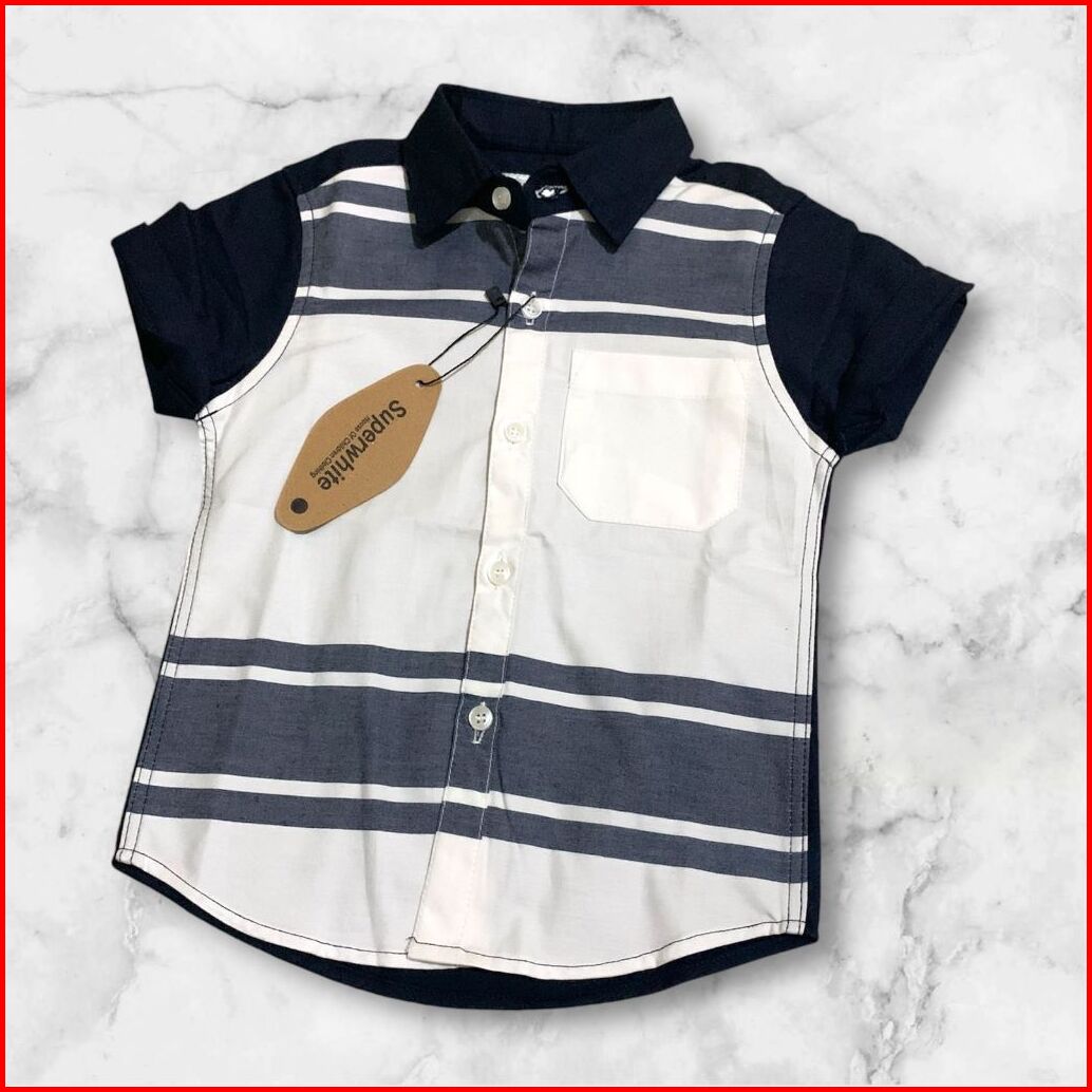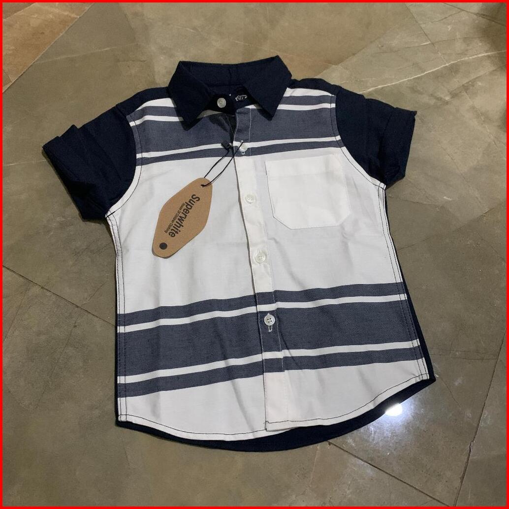 Kemeja Anak 1-14 Tahun Lengan Pendek Kombinasi Warna Bahan Katun Premium Adem Best Seller