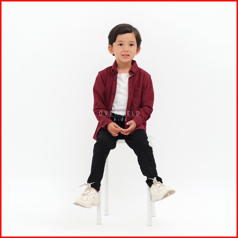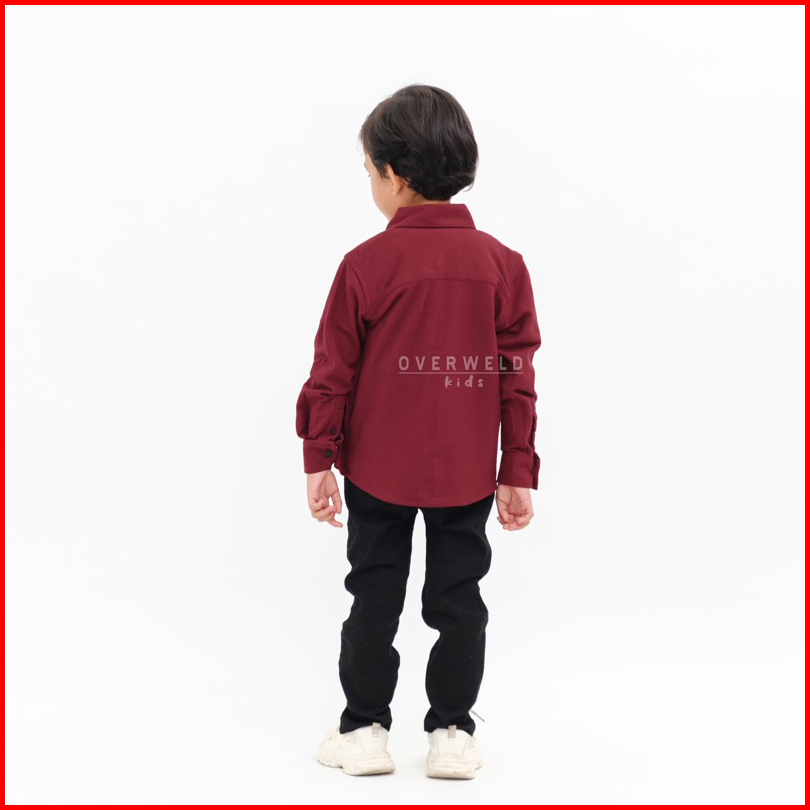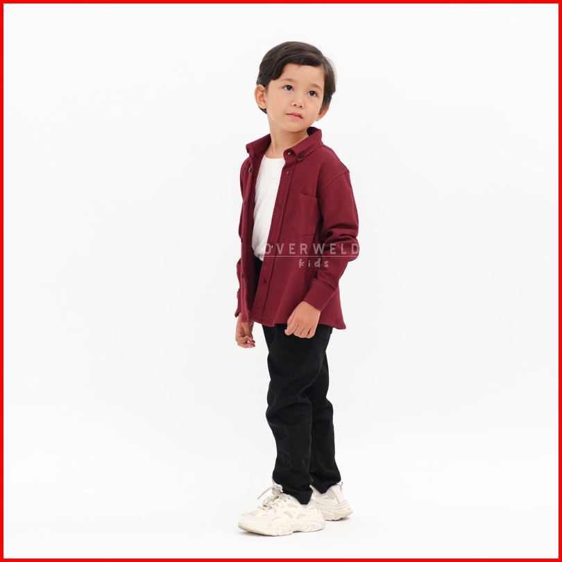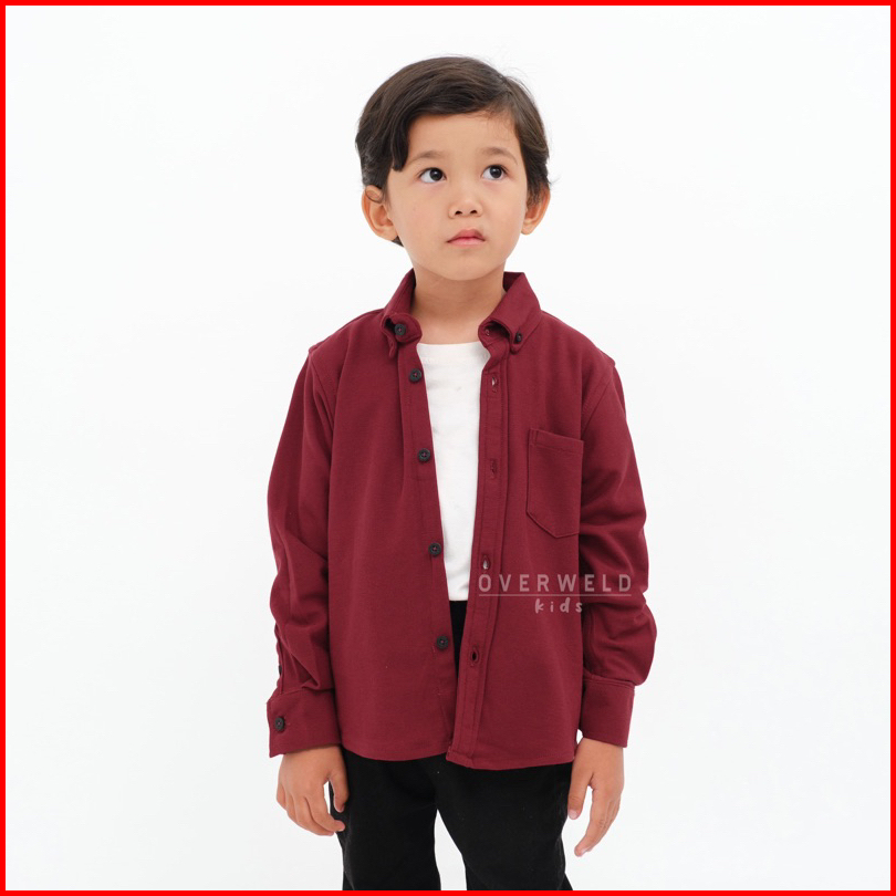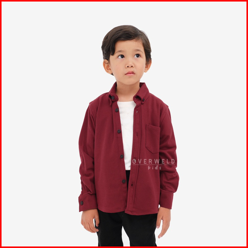 Overweld Kids - Kemeja Pique Anak Lengan Panjang Maroon Maroon Cotton Pique Best Quality