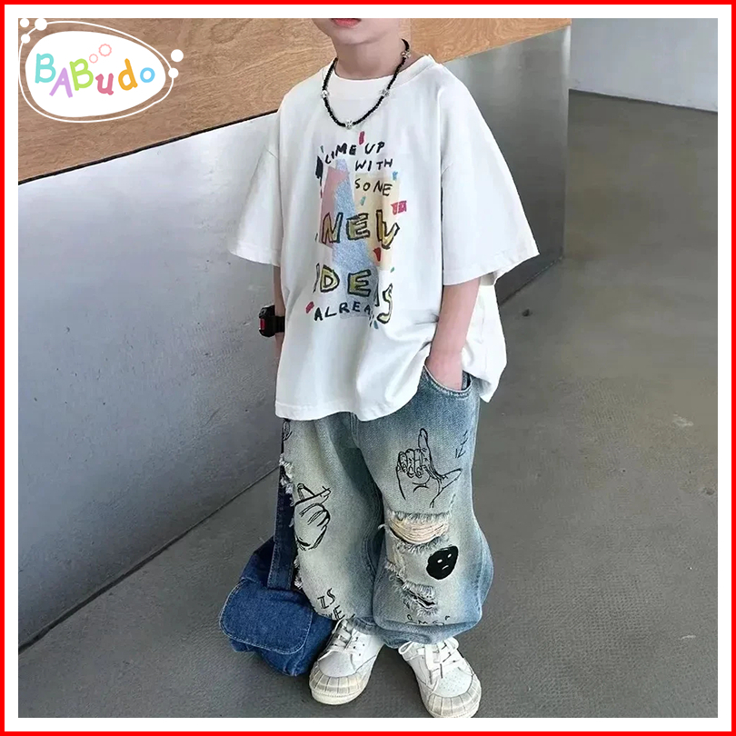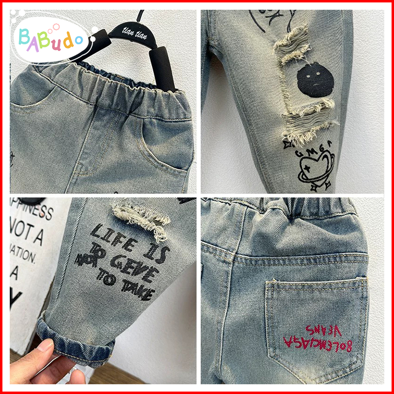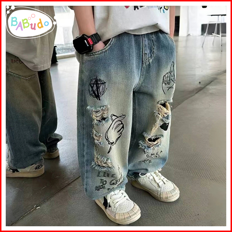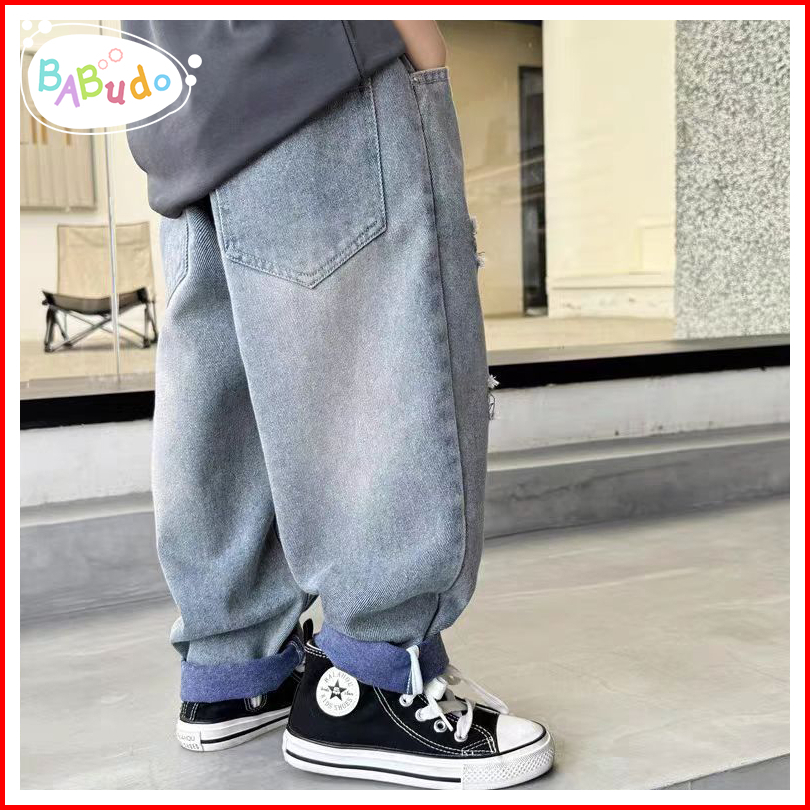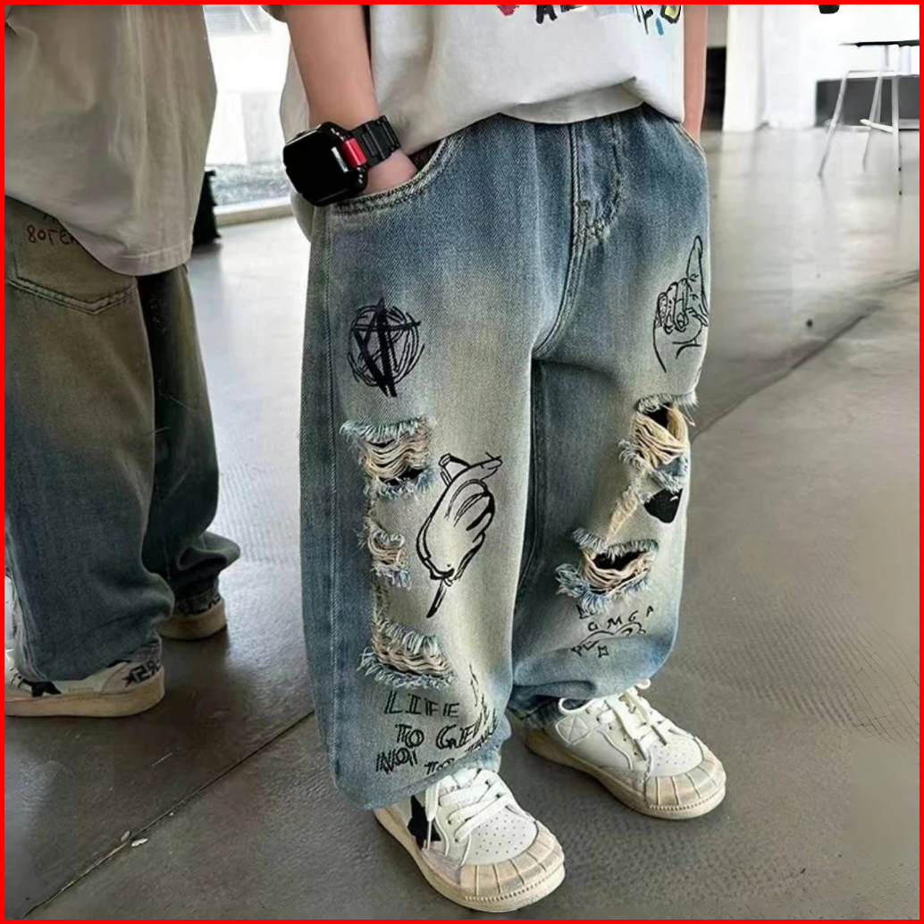 Celana Jeans Anak Laki-laki Panjang Usia Premium Panjang Robek Yang Modis Fashion Populer