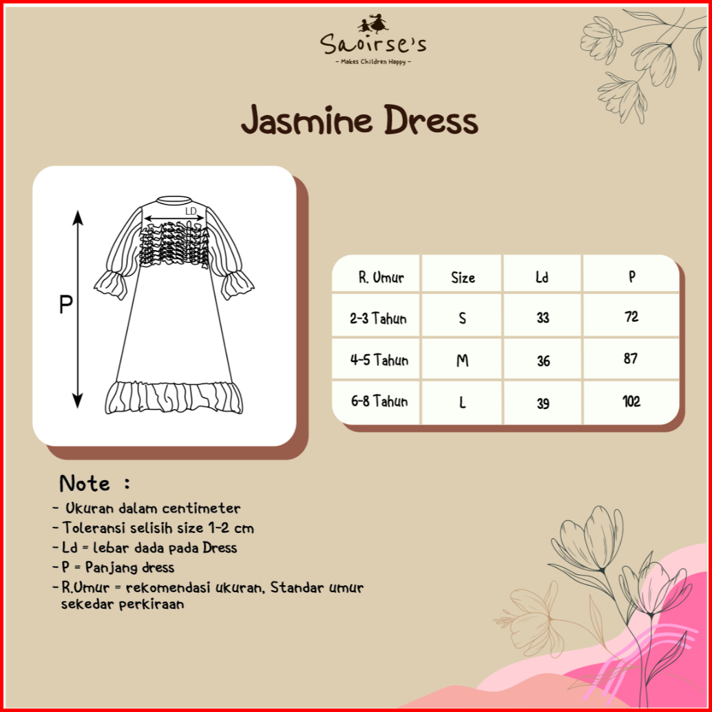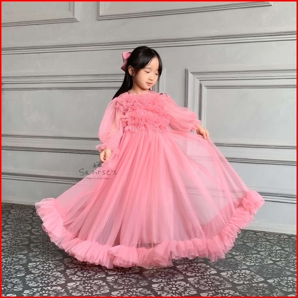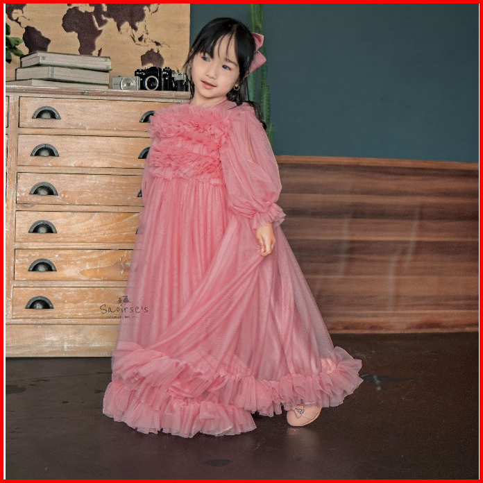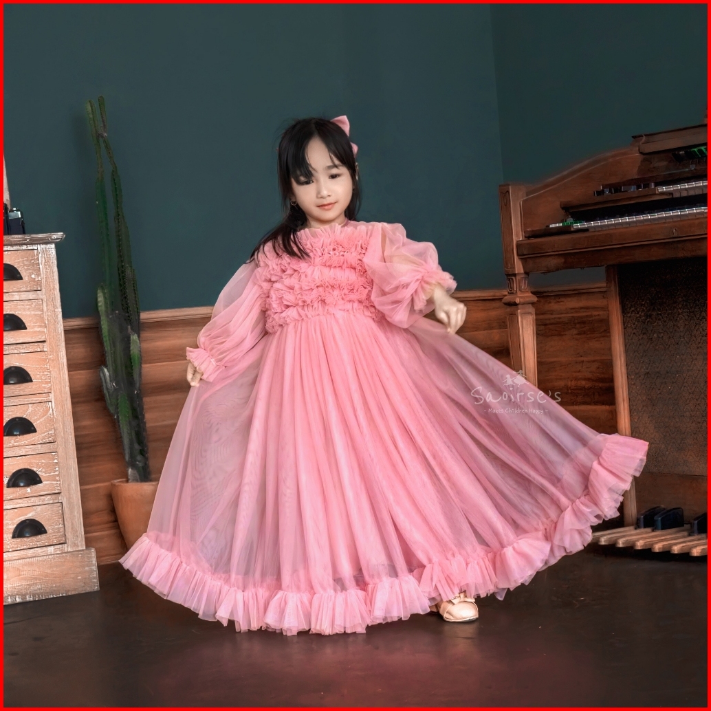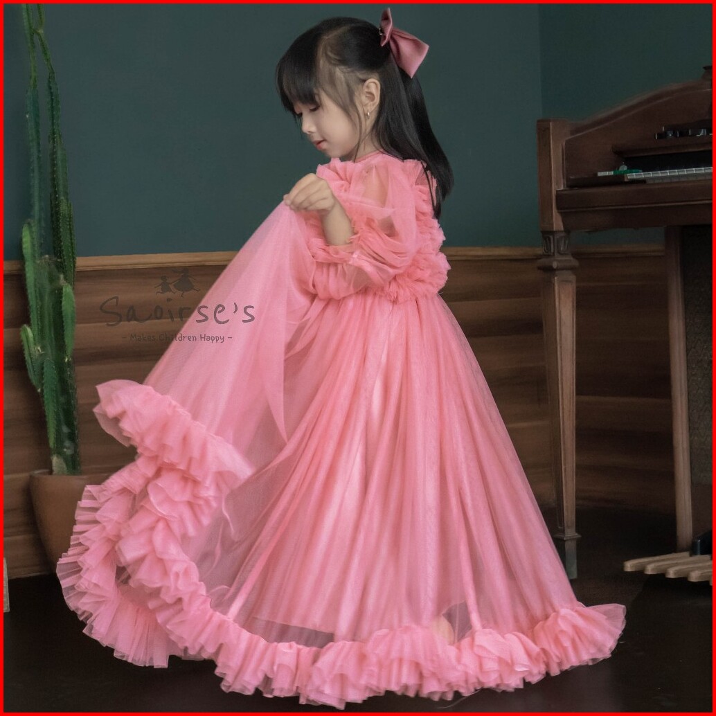 Saoirse S Princess Jasmine Dress Tutu Anak 2-8 Tahun Silk Ruffle Mewah Pesta Ultah Elegan Korean