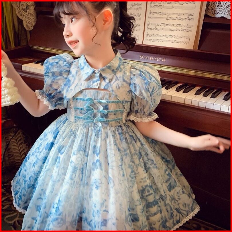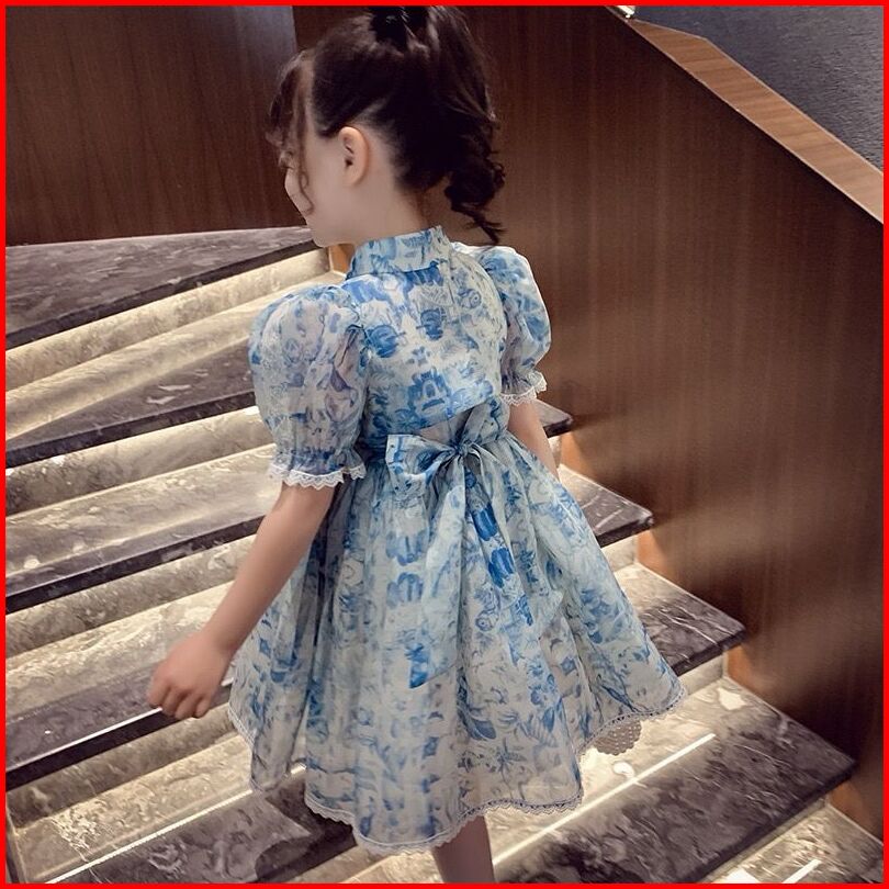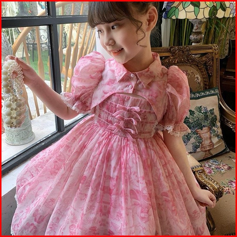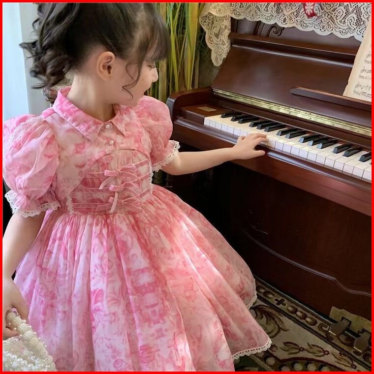 Dress Tradisional Anak Perempuan Motif Marble Tali Pita Kancing Atas Fashion
