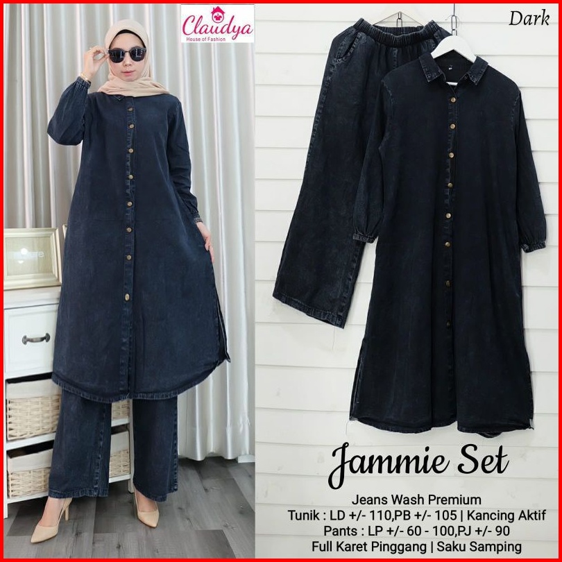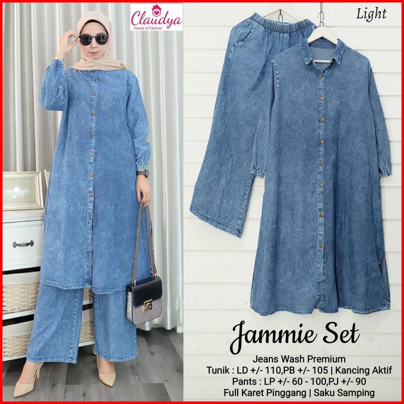 Jammi Set Tunik Top Celana Setelan Wanita Jeans Jins Denim Terbaru
