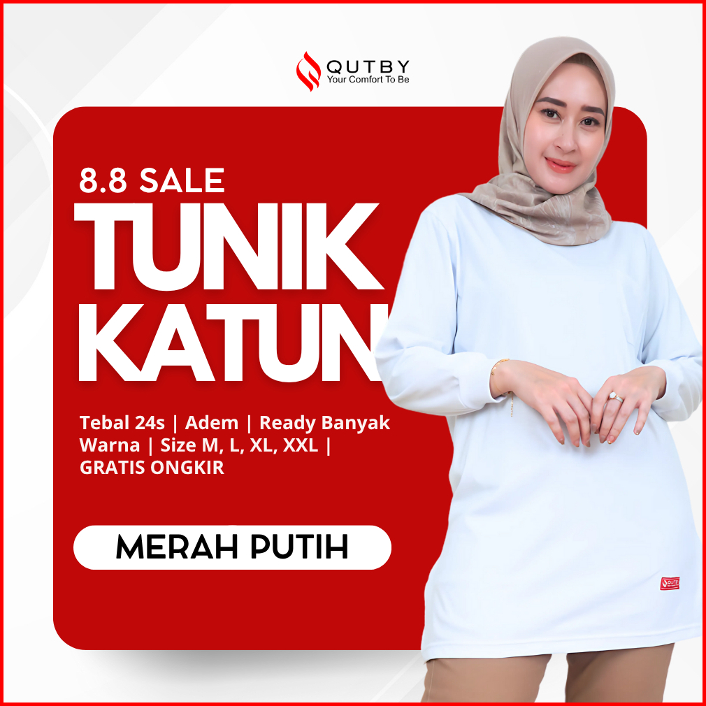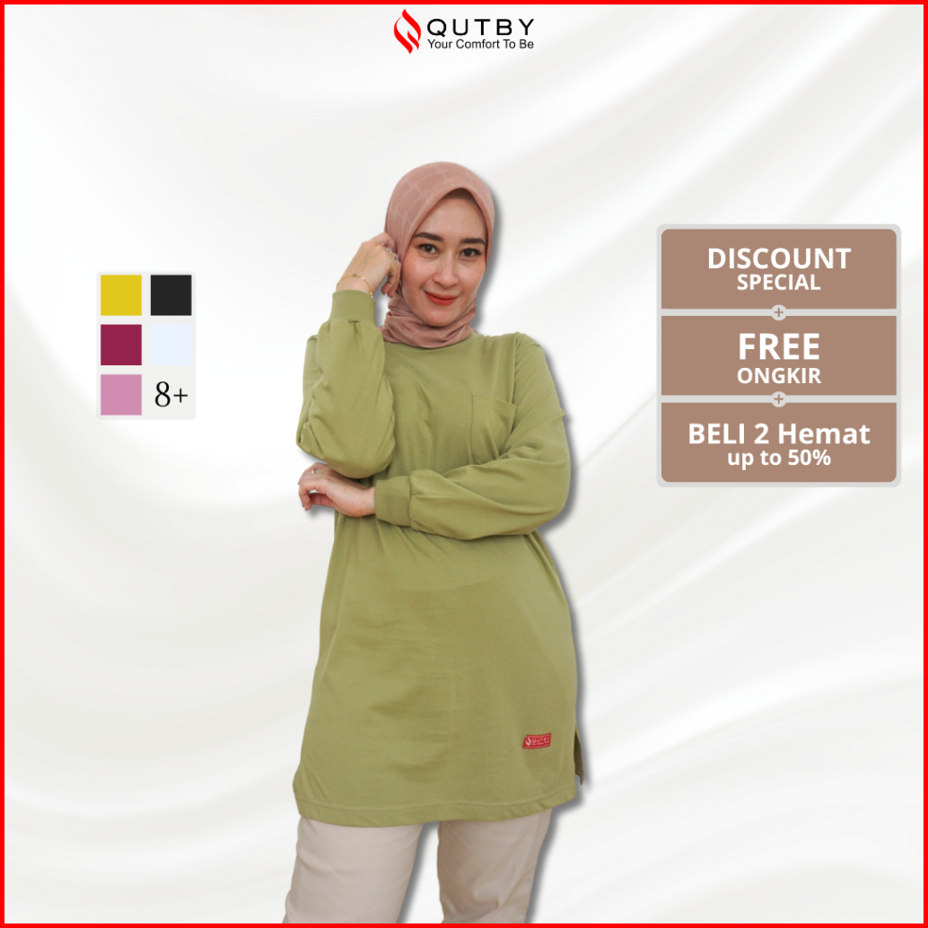 Qutby - Tunik Panjang Wanita Bahan Katun Combed 24s Premium Atasan Tunik Wanita Kekinian