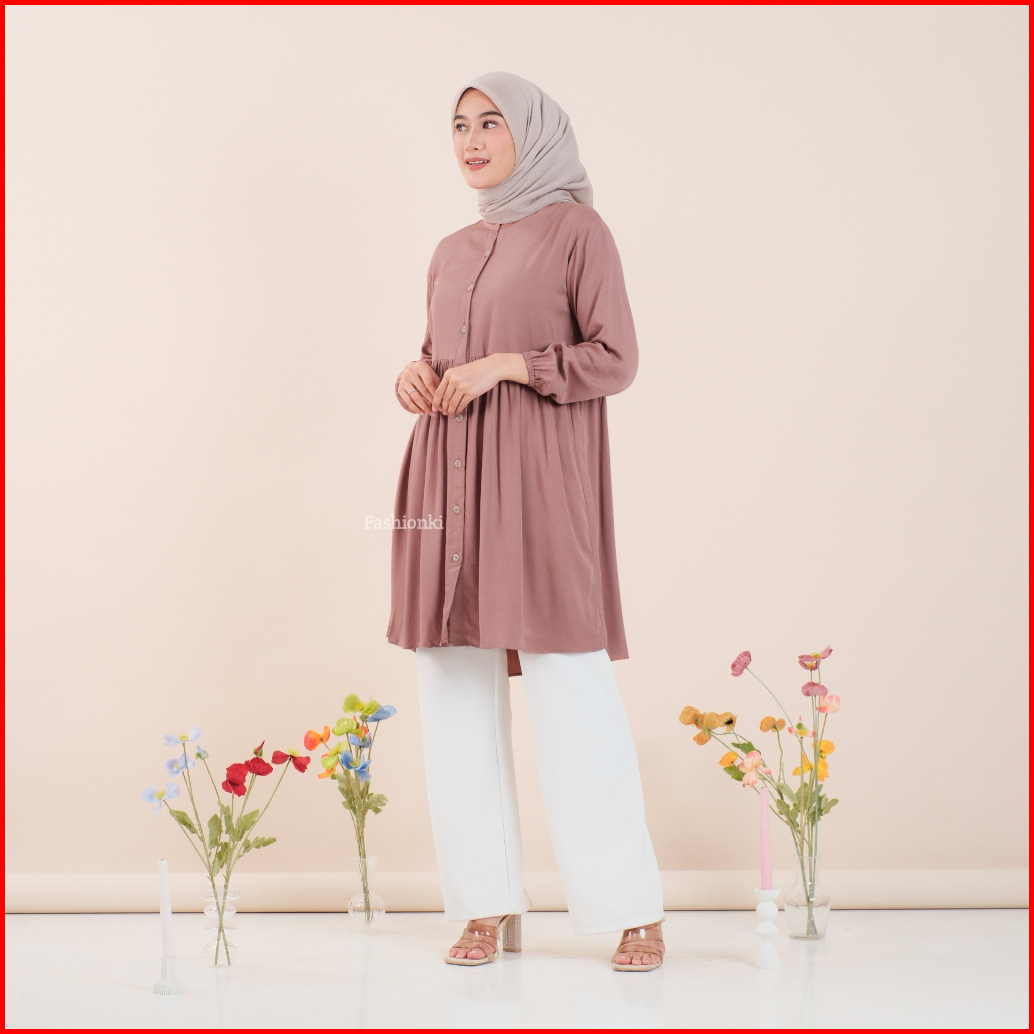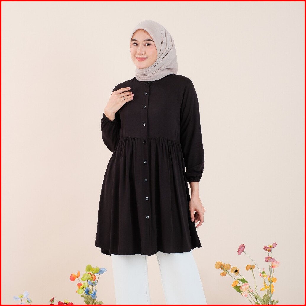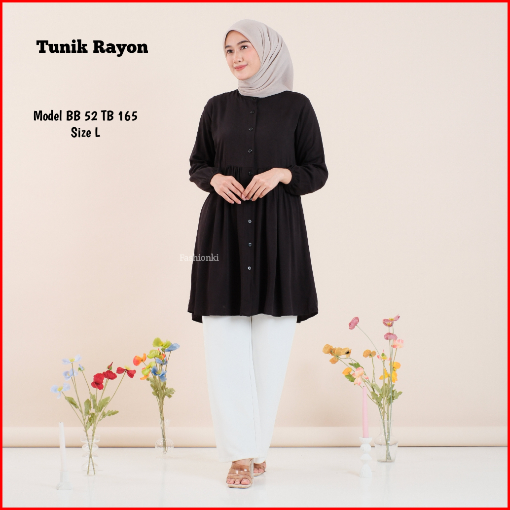 Tunik Hitam Wanita Lengan Panjang Baju Atasan Tunik Wanita Rayon Premium