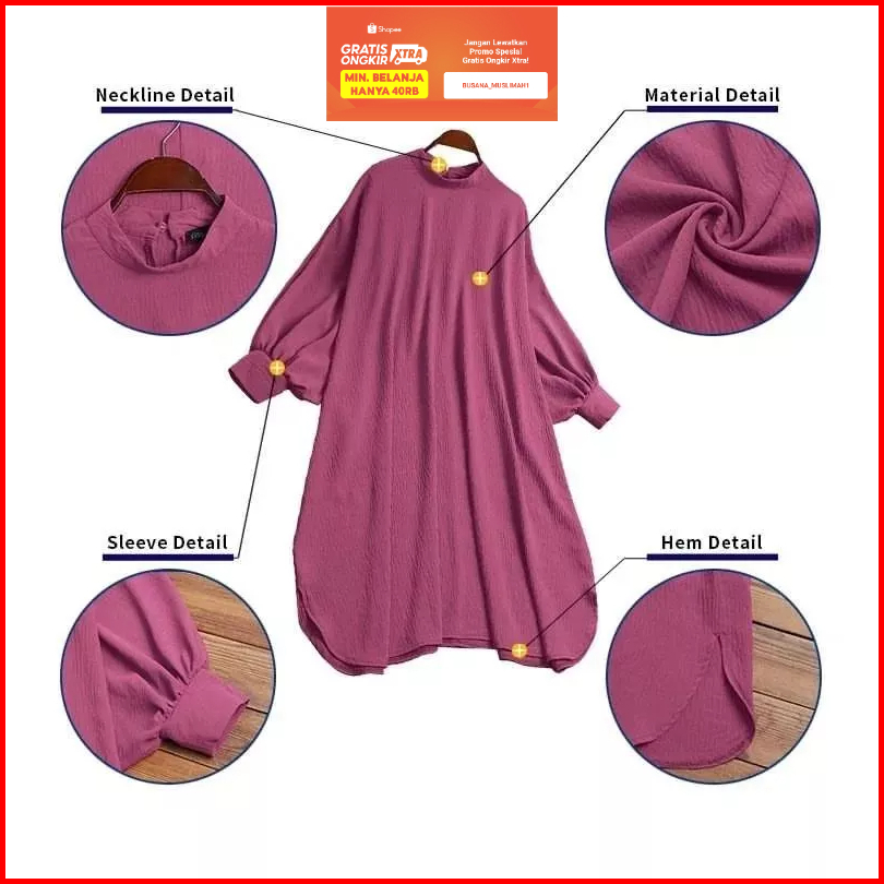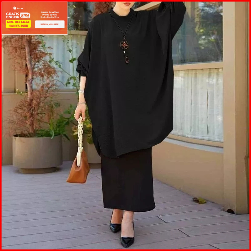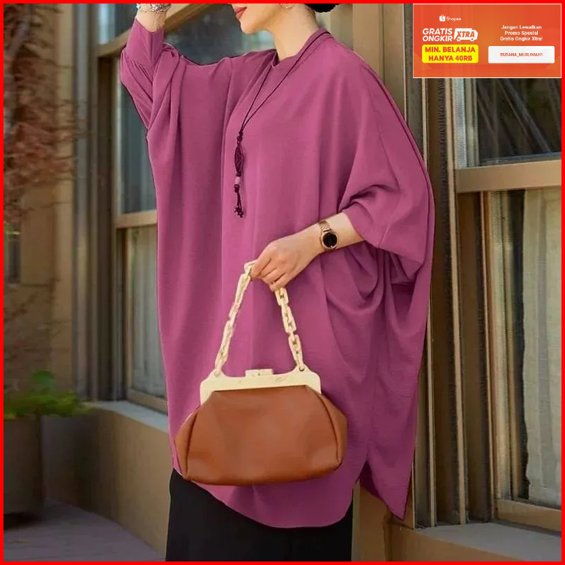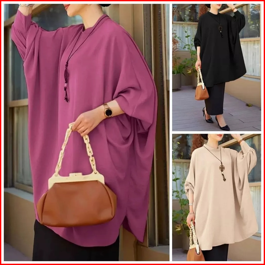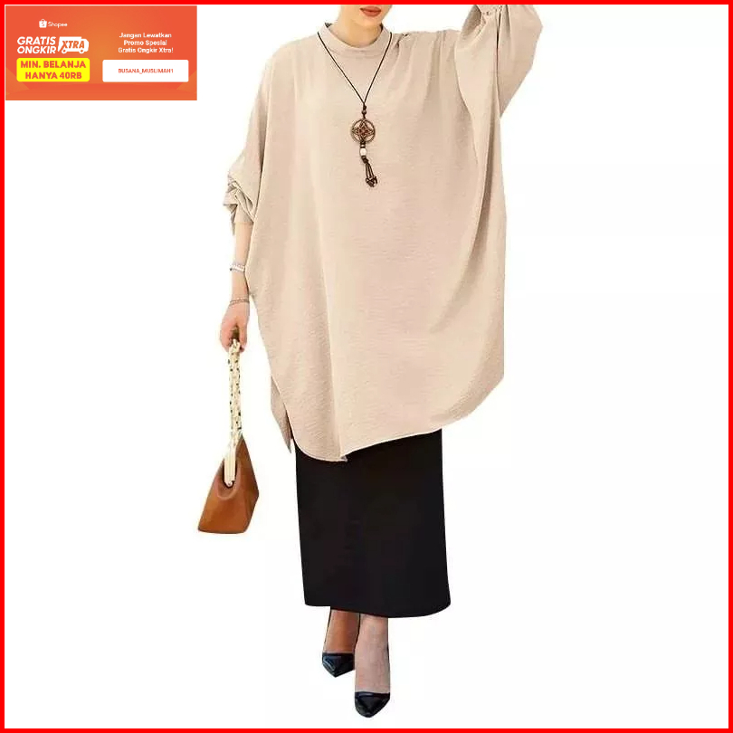 Atasan Tunik Reysel Batwing Bahan Cringkle Batwing Trend Kekinian Baju Oversize Model Terbaru