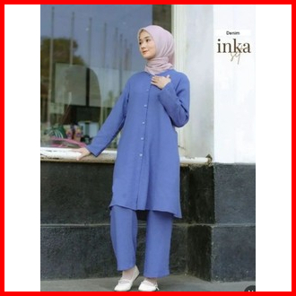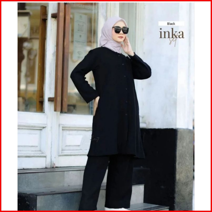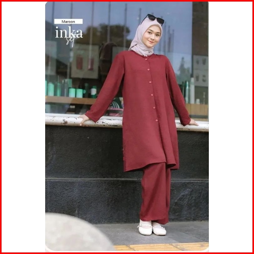 Setelan Baju Tunic Celana Muslim Wanita Terbaru 2025 Kekinian Crinkle Jumbo Size S M L Xl Xxl Xxxl