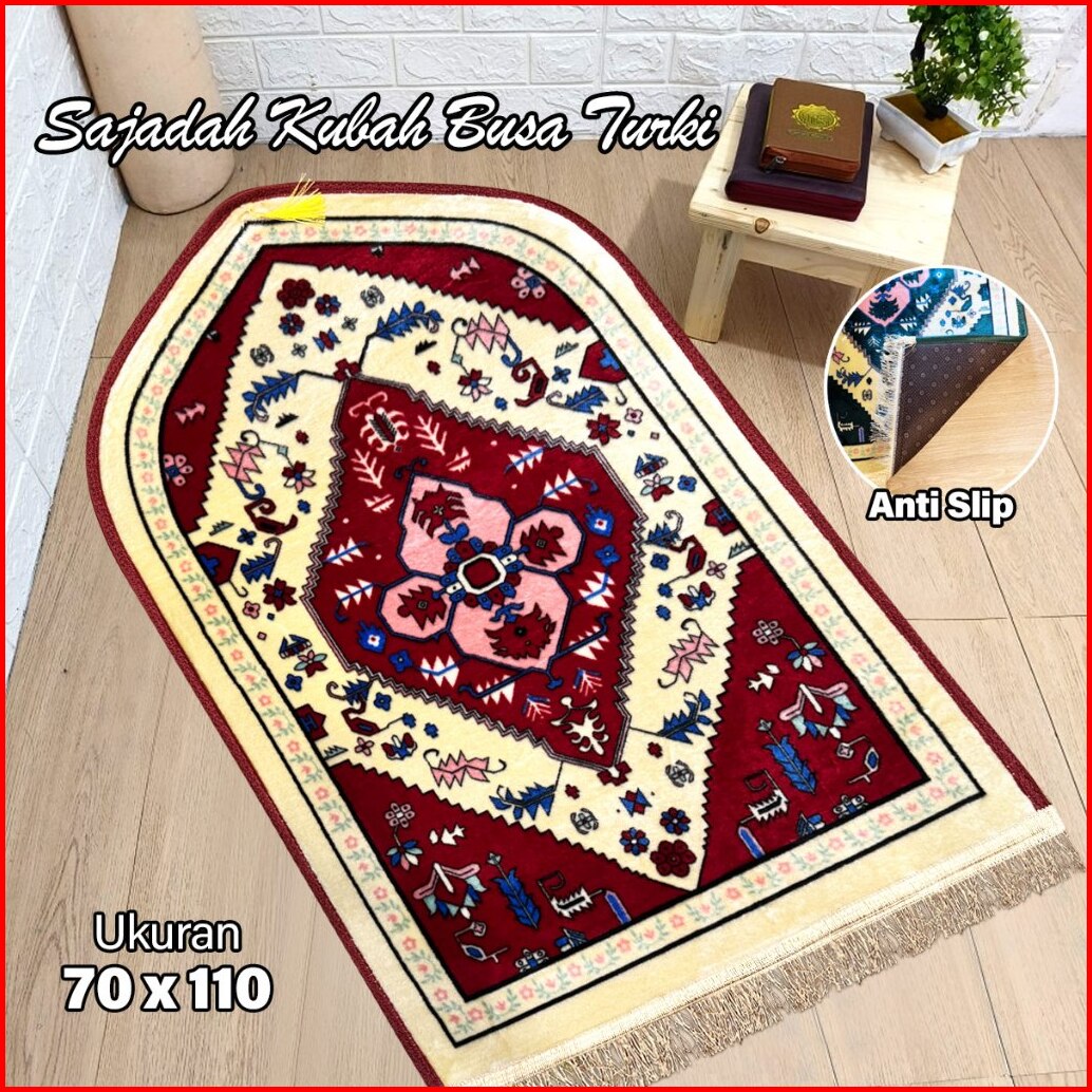 Sajadah Kubah Busa Turki Rumbai 70 X 110 Sajadah Busa Empuk Tebal Anti Slip Sajadah Turki 6876