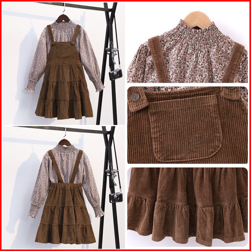 2-10tahun Dress 2in1 Corduroy Gaun Anak Korea Premium