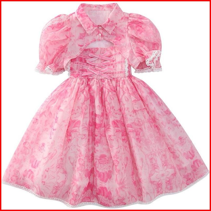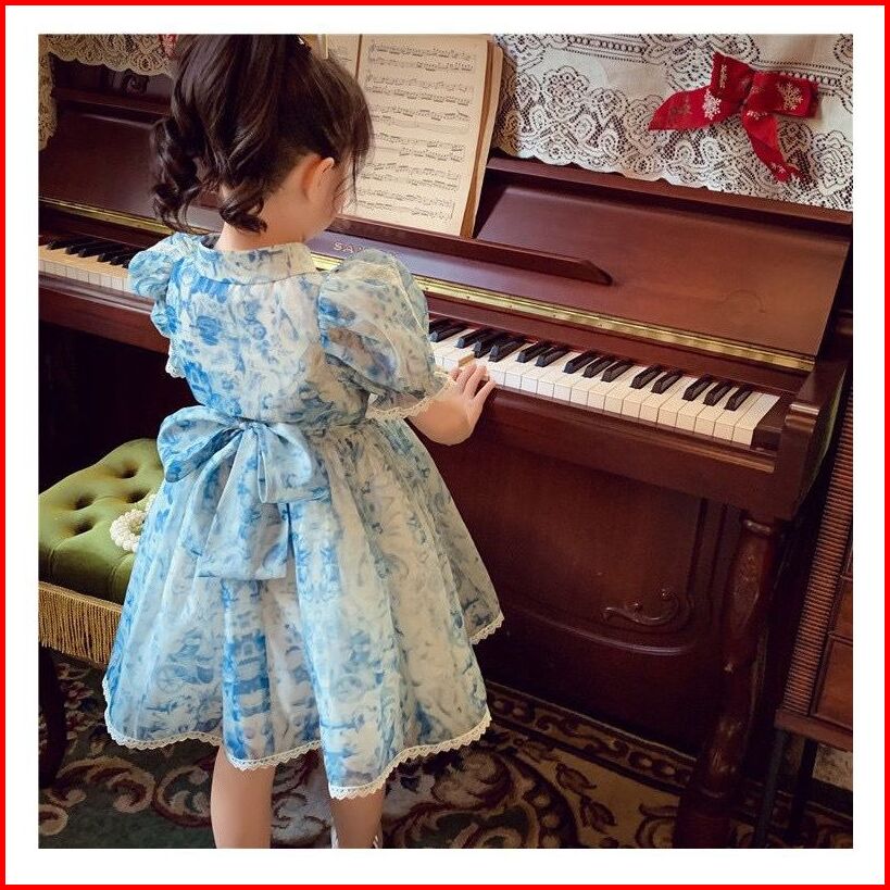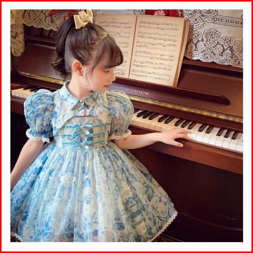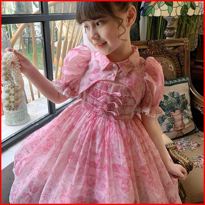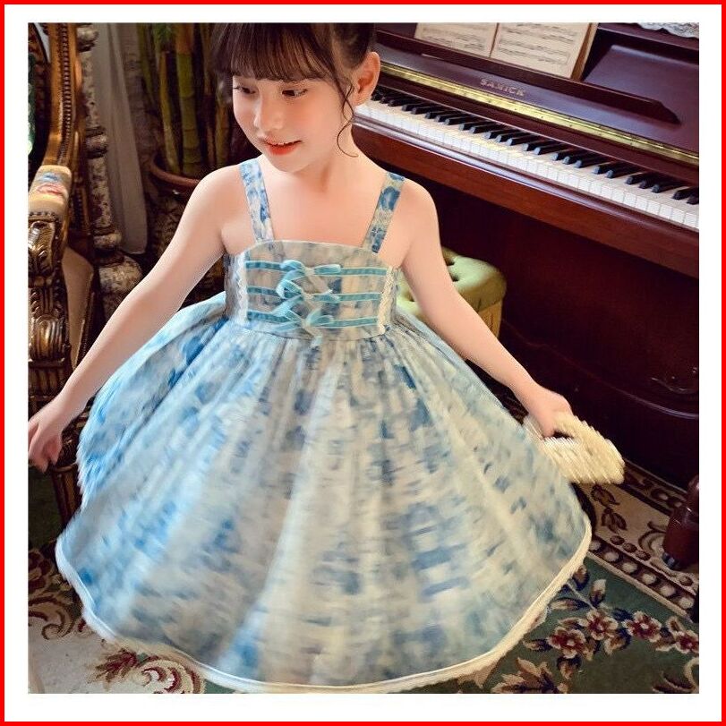 Kidsfashionkoleksi Dress Tradisional Anak Perempuan Motif Marble Tali Pita Kancing Atas