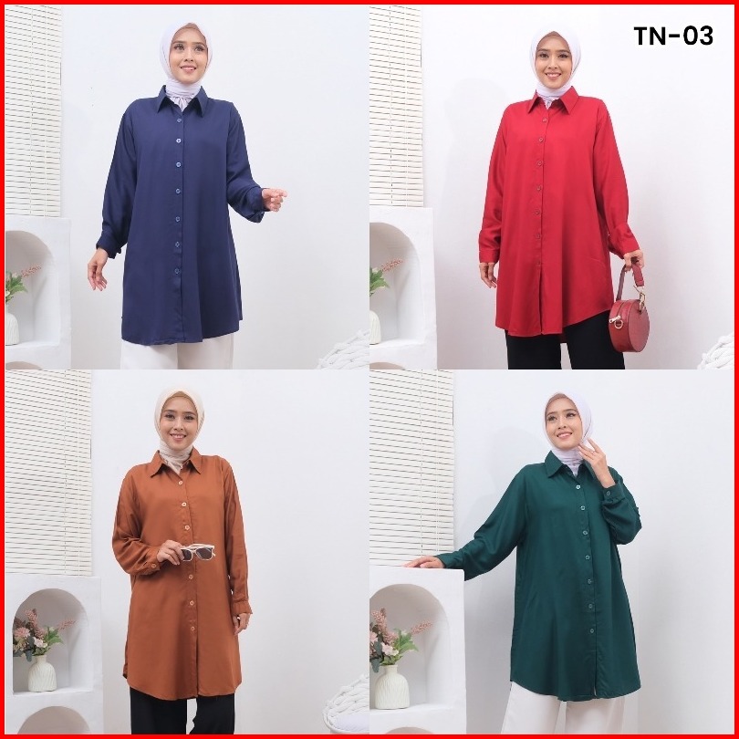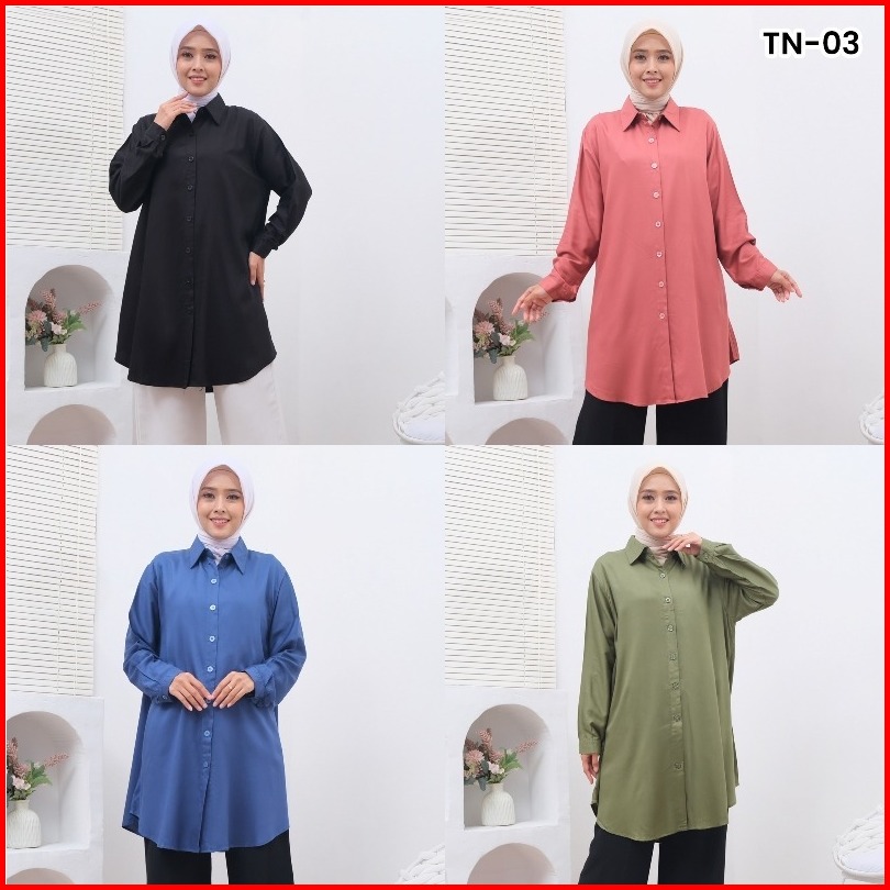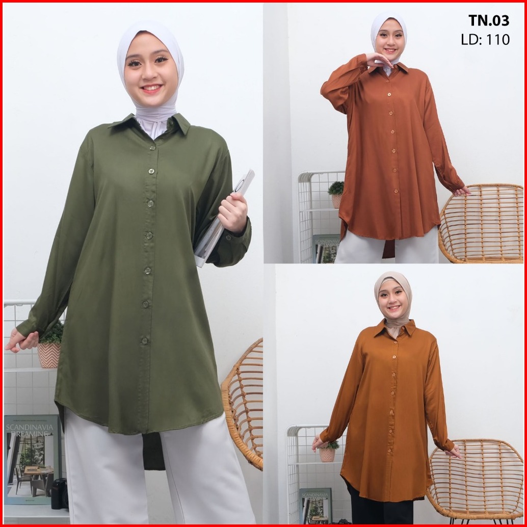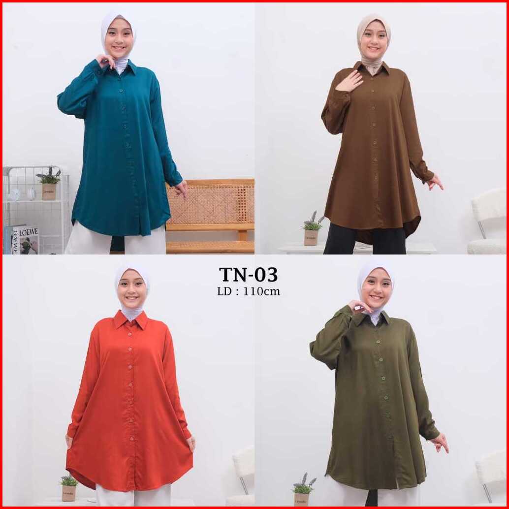 Trend Tn-03 Tunik Rayon Twill Ld100 Ld110 Ld120 Ld130 Allsize Atasan Wanita Polos Semitunik Wanita