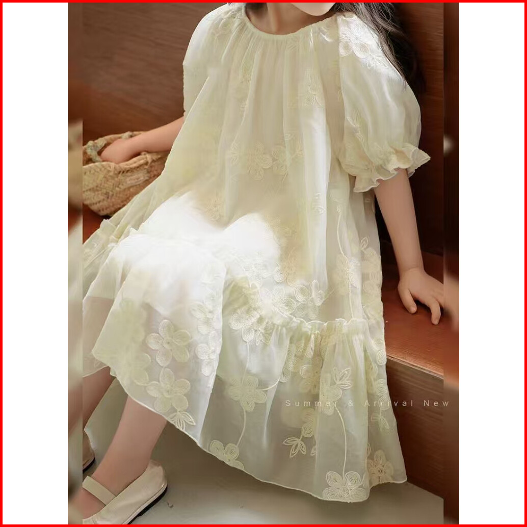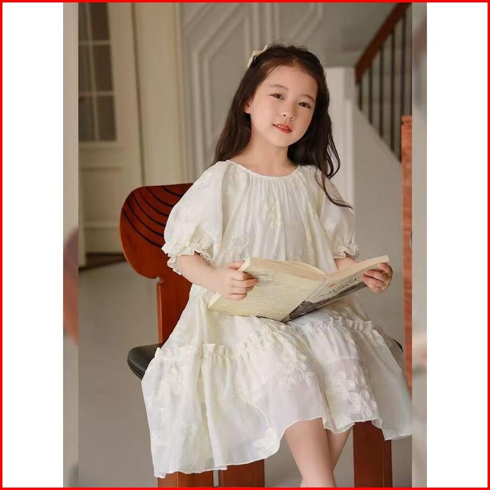 Dress Anak Lebaran Lace Putih Gaun Anak Anggun Bahan Adem Anti Nerawang Dengan Furring Ootd Dress Old Money