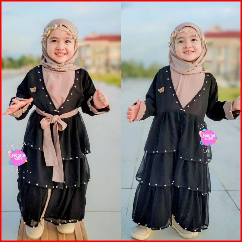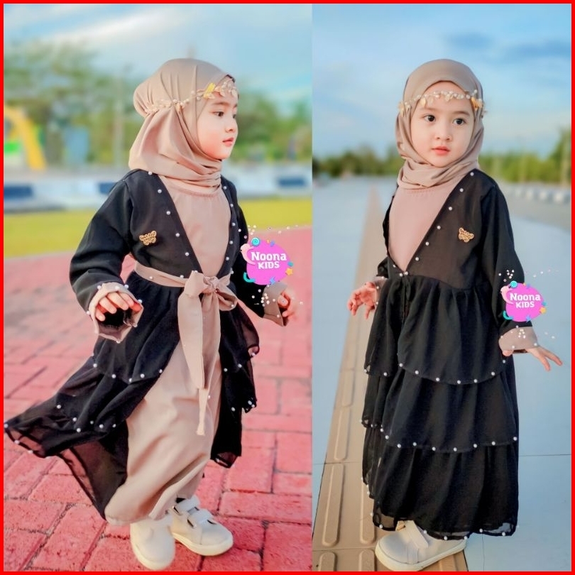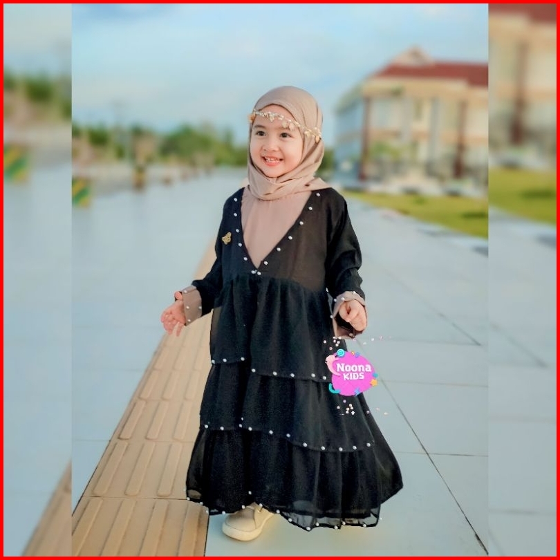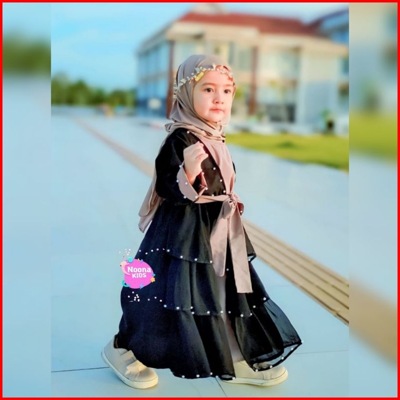 Noona Kids 1-14 Tahun Dress Muslim Anak Perempuan Hitam Gamis Anak Abaya Kids Mutiara 862 Dubai Alifa