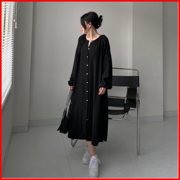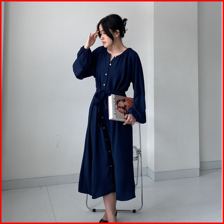 Days Modena Flowy Dress Dress Wanita Lengan Panjang Baju Muslim Tunik Gamis Dress Korea Midi Dress Crinkle Dress Basic D