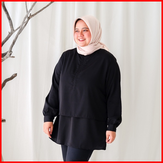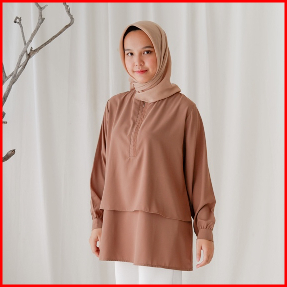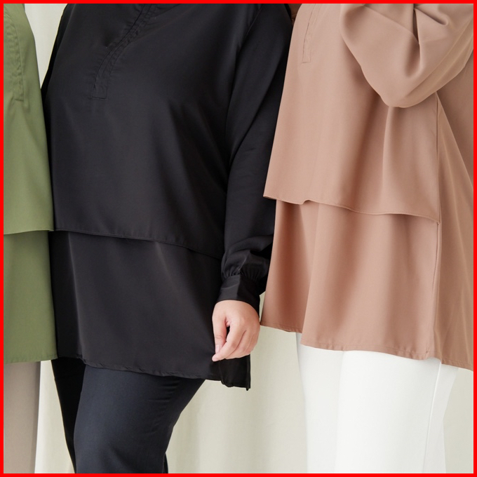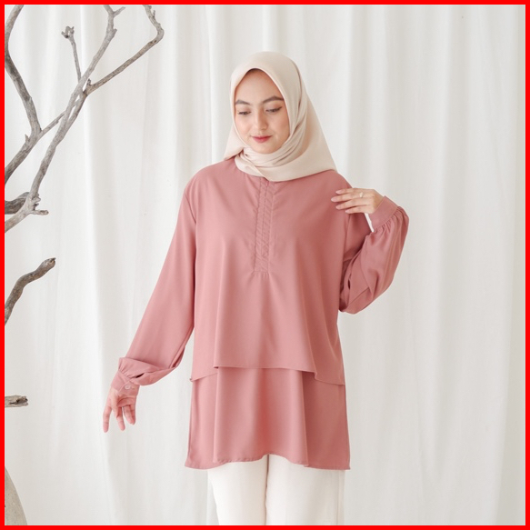 Nice Label - Maura Shirt - Atasan Basic Wanita Tunik Adem Busui Sreting Dada Dan Kancing Tangan