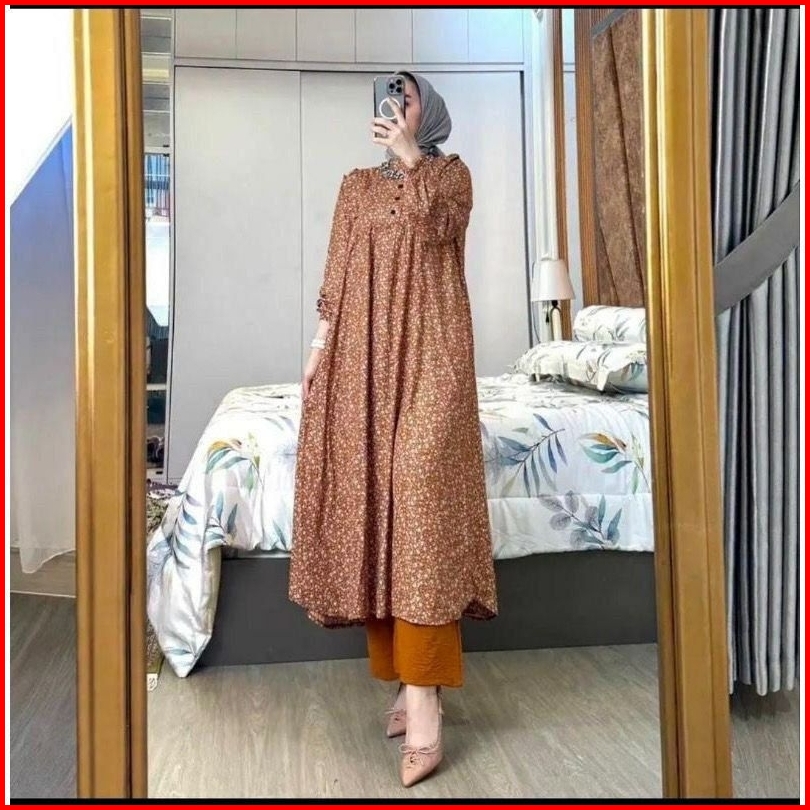Setelan Tunik Wanita Terbaru Kekinian Kirana Oneset Long Tunik Bahan Rayon Diamond Motif Bunga Mix Crinkle