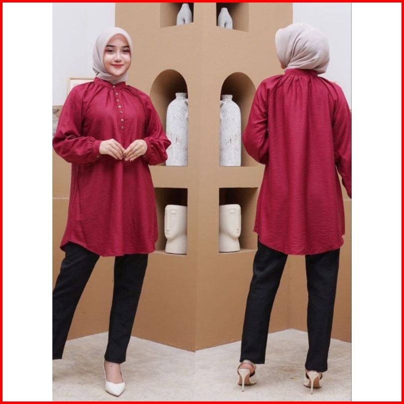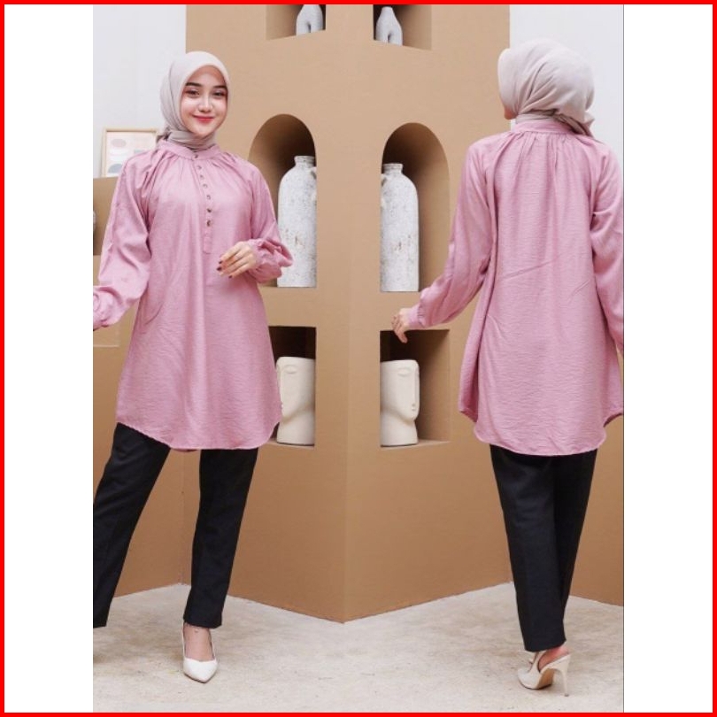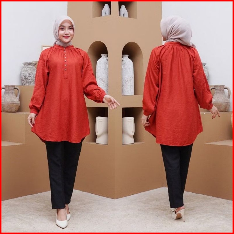 Karla Tunil Kemeja Wanita Polos Polo Linen Tunik Jumbo Busui