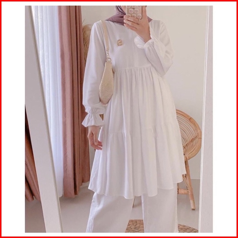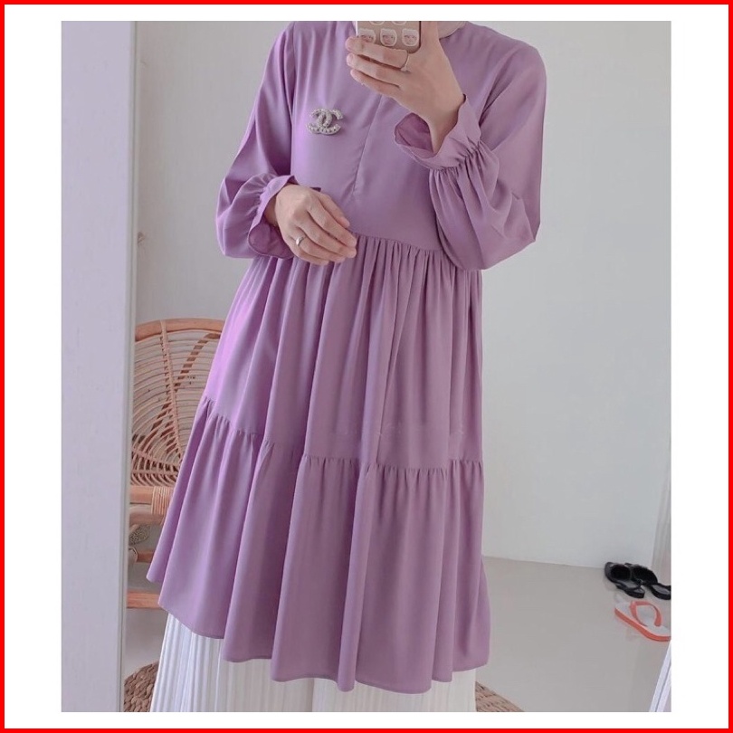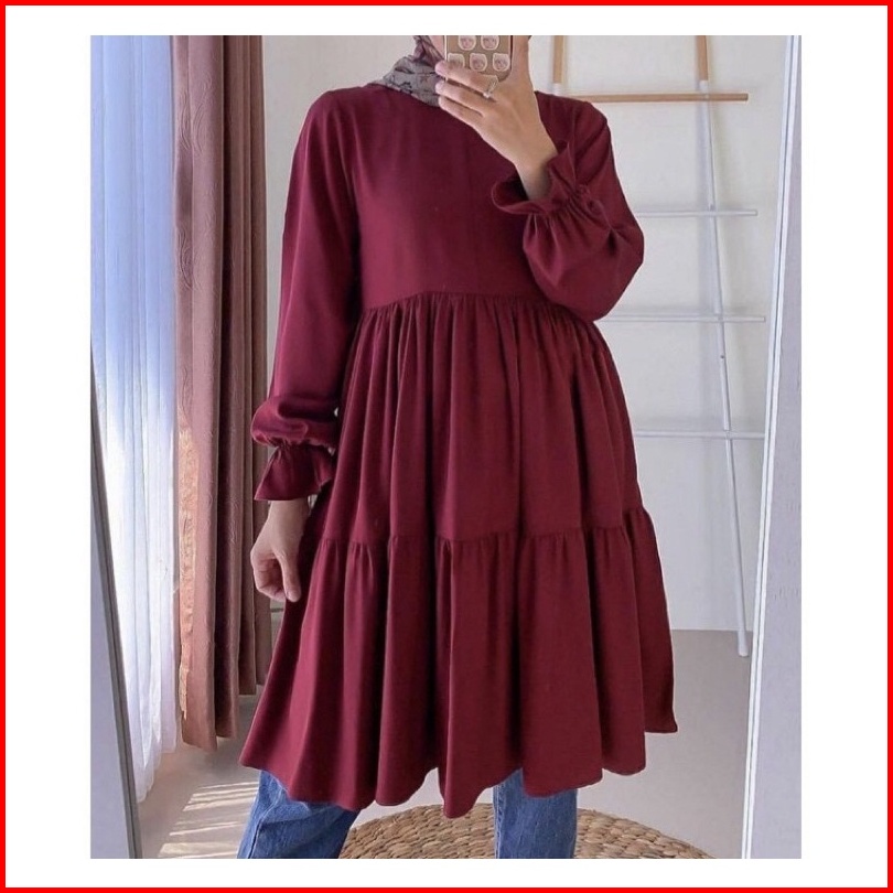 Monica Tunik Tunik Tunik Rempel Tunik Susun Rayon Twill