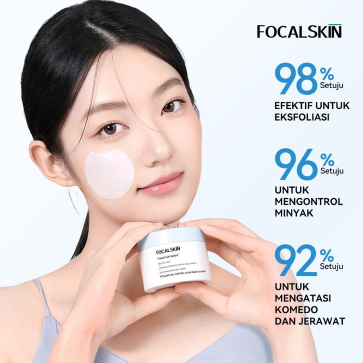 [60 Pads] FOCALSKIN Acne Exfoliating Clear Pad Cica Pad / Kapas Eksfoliasi Wajah Toner Pad Peeling Pad / Double Cleansin