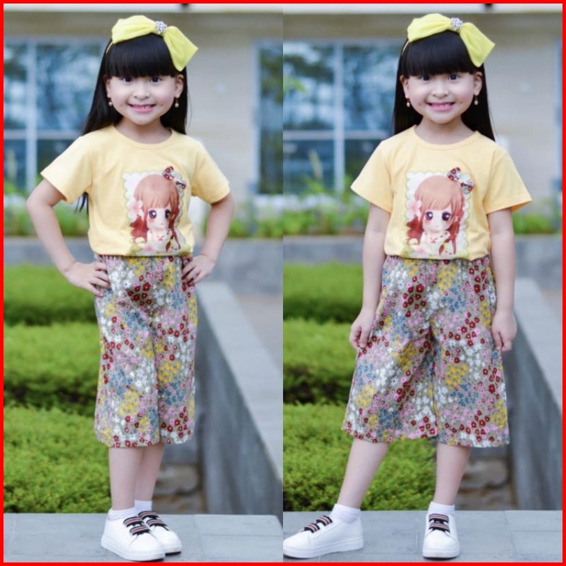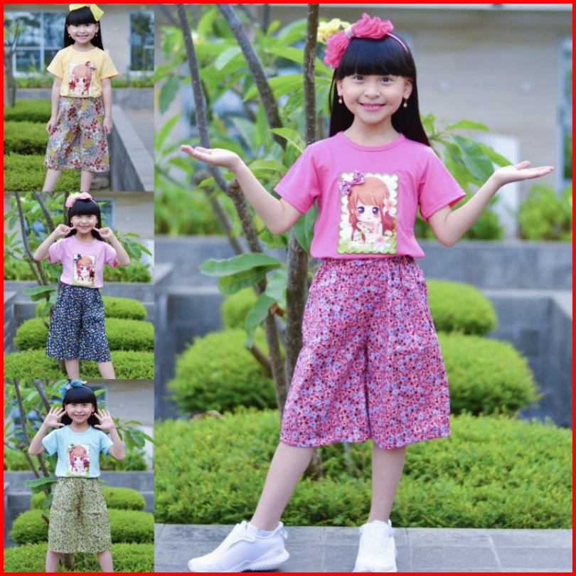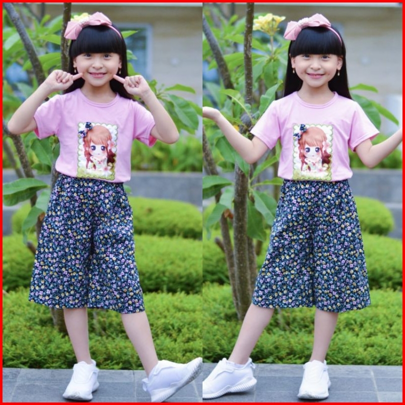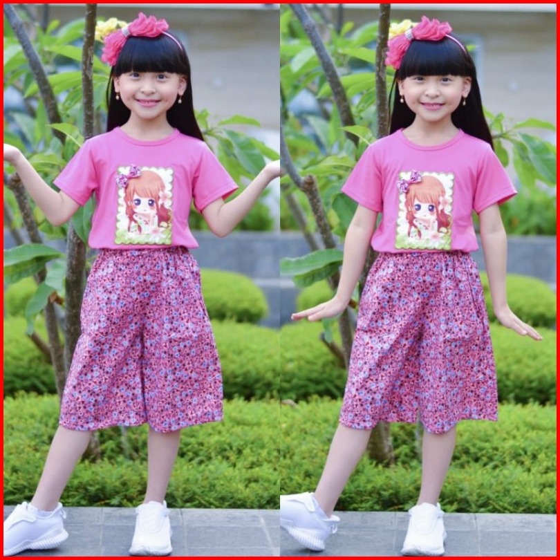 Setelan Anak Perempuan 4-11tahun Baju Anak Perempuan Setelan Anak Celana Kulot Pakaian Anak Perempuan Baju Setelan Anak