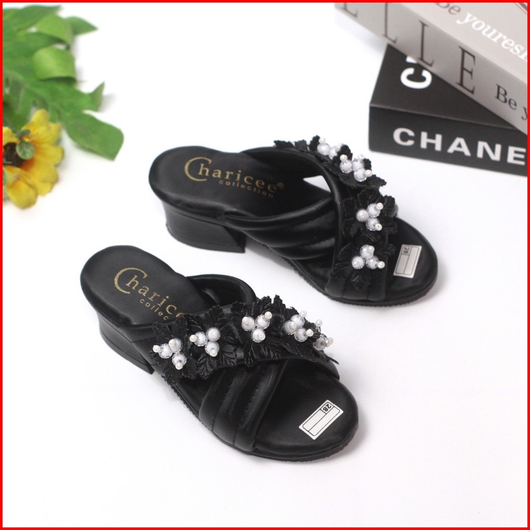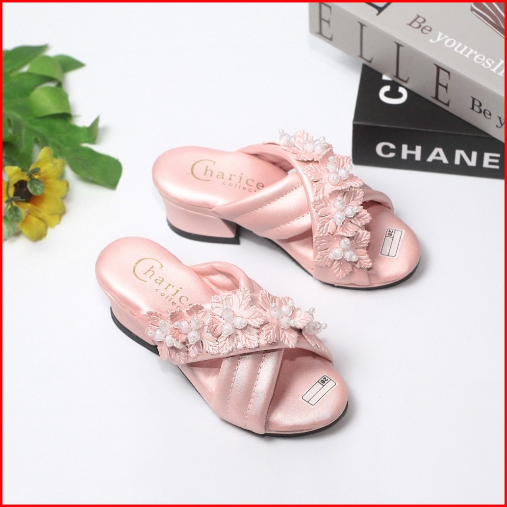 Sandal Pesta Anak Perempuan Hak 3cm Empuk Ringan Sol Anti Slip Motif Mute Ban Silang