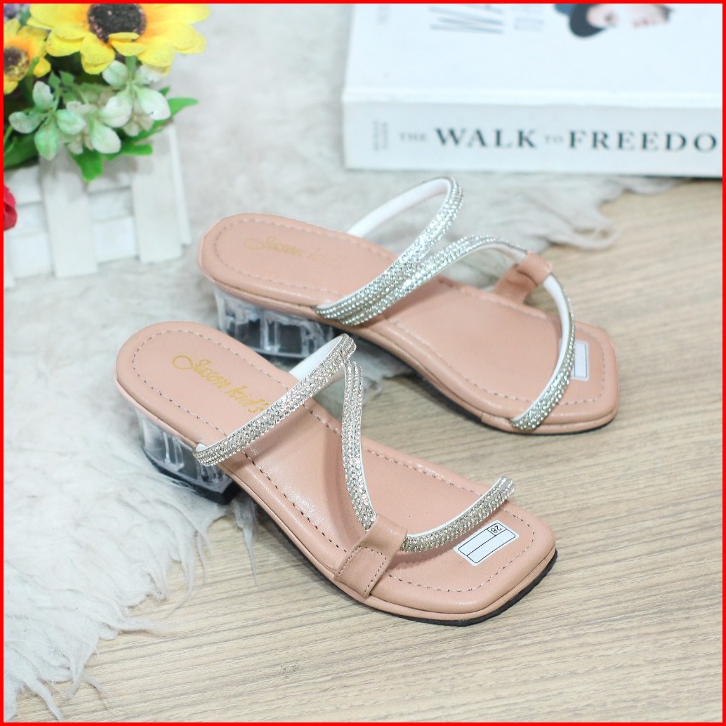 Olivia Sandal Heels Anak Perempuan Hak Kaca 3cm Tali Permata - Tessa
