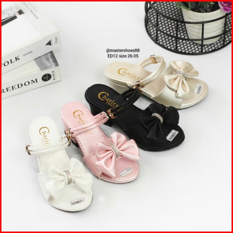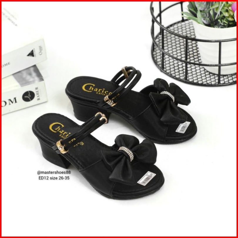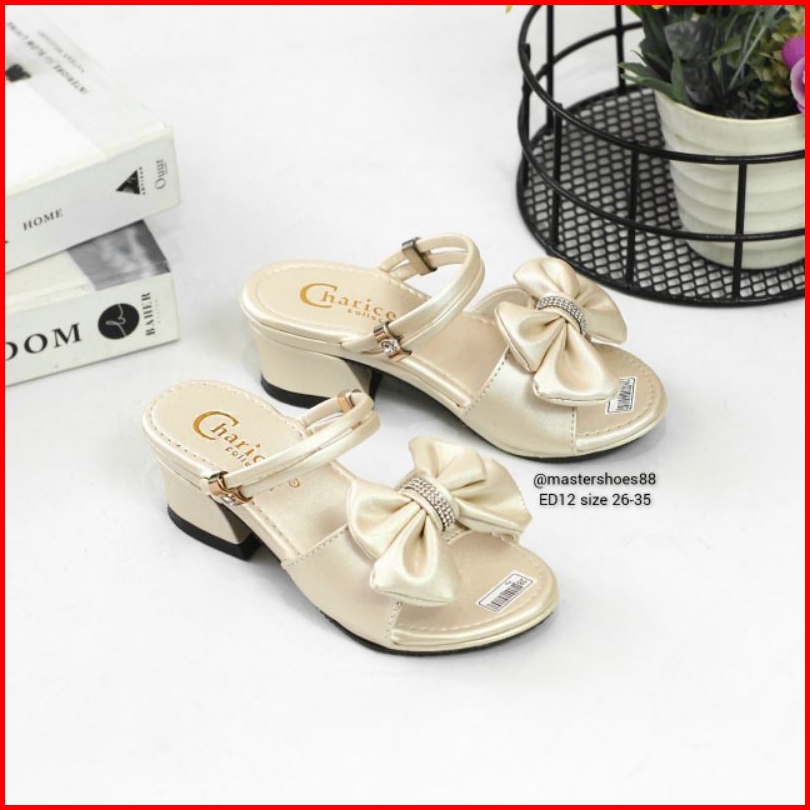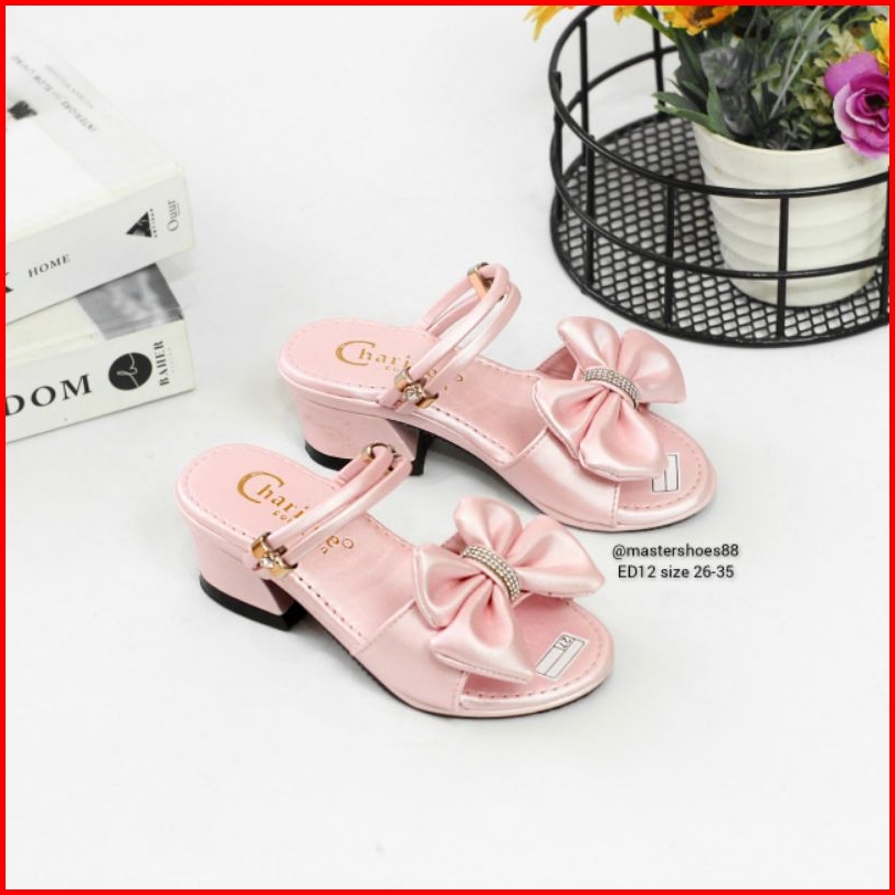 Master Ed12 - New Collection Sandal Selop Pesta Anak Perempuan Hak Tahu Motif Pita Sendal Heels Fashion Slip-on