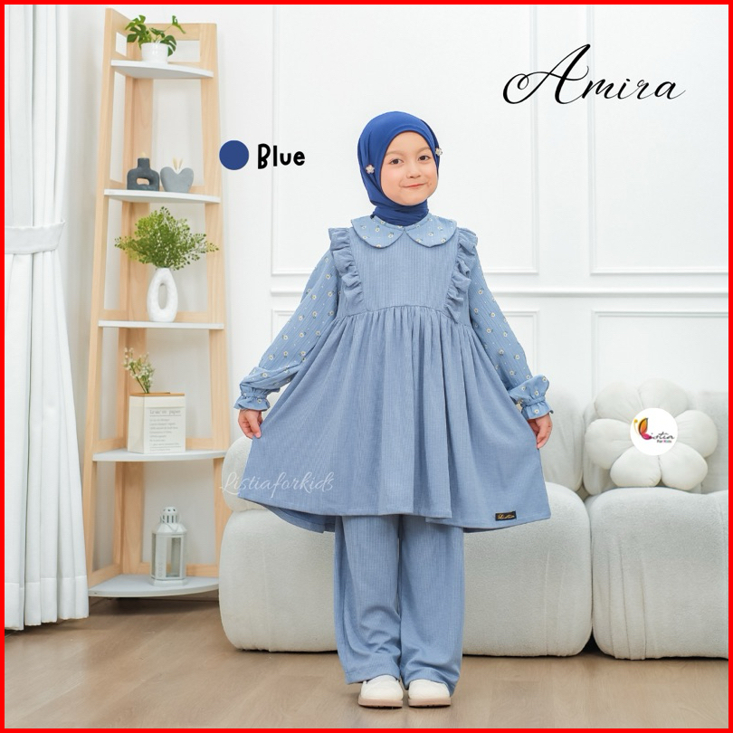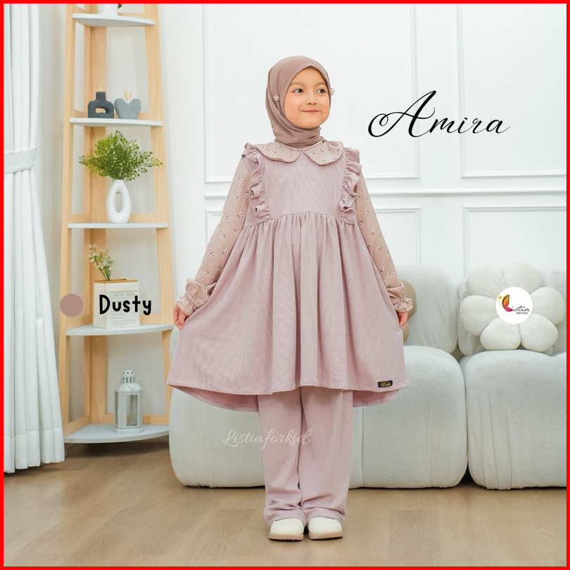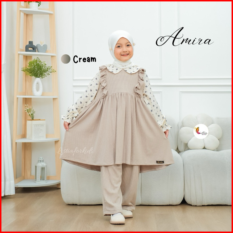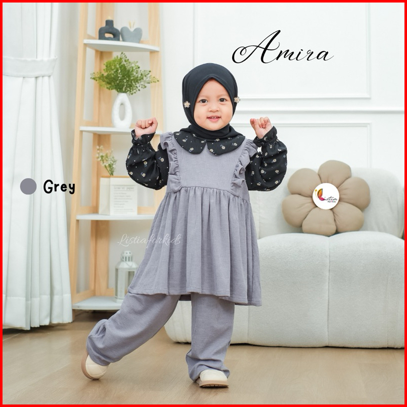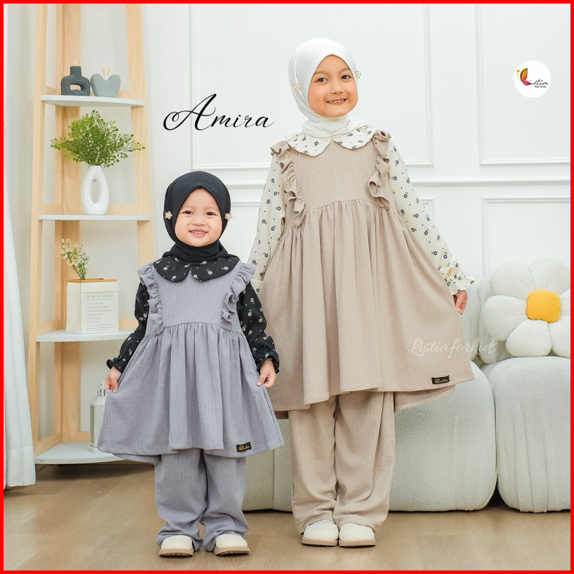 One Set Anak Perempuan Amira- Setelan Celana Anak Perempuan 1-12 Tahun Bahan Knitt Dan Crinkle Premium By Listiaforkids