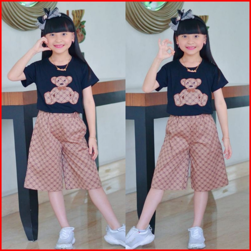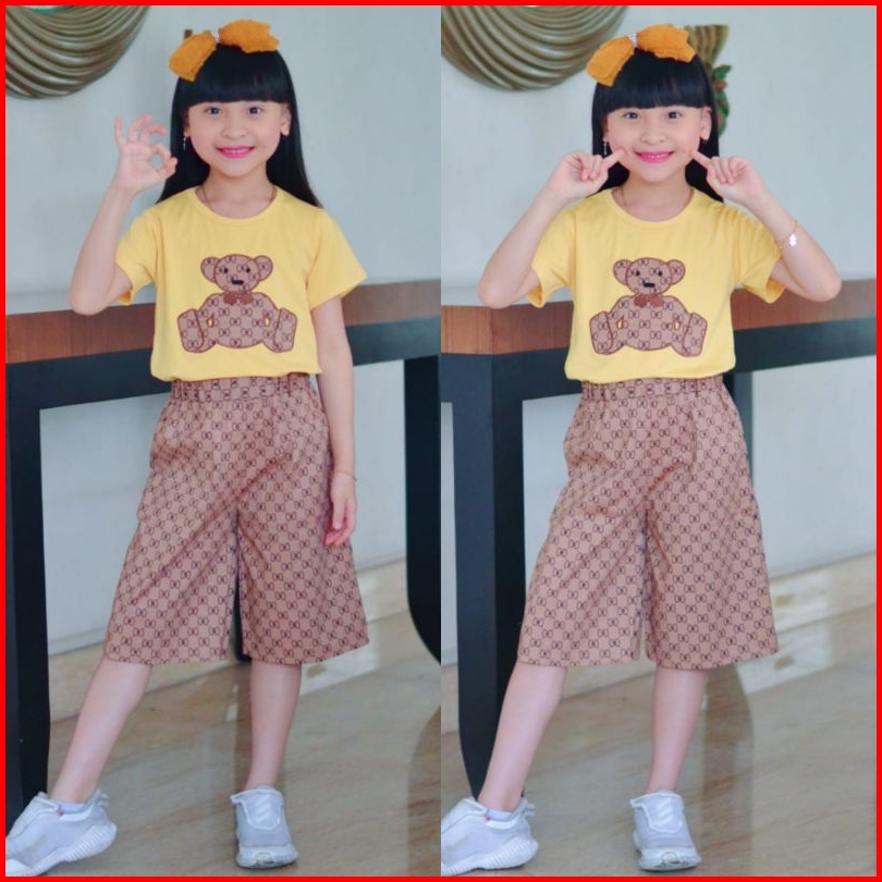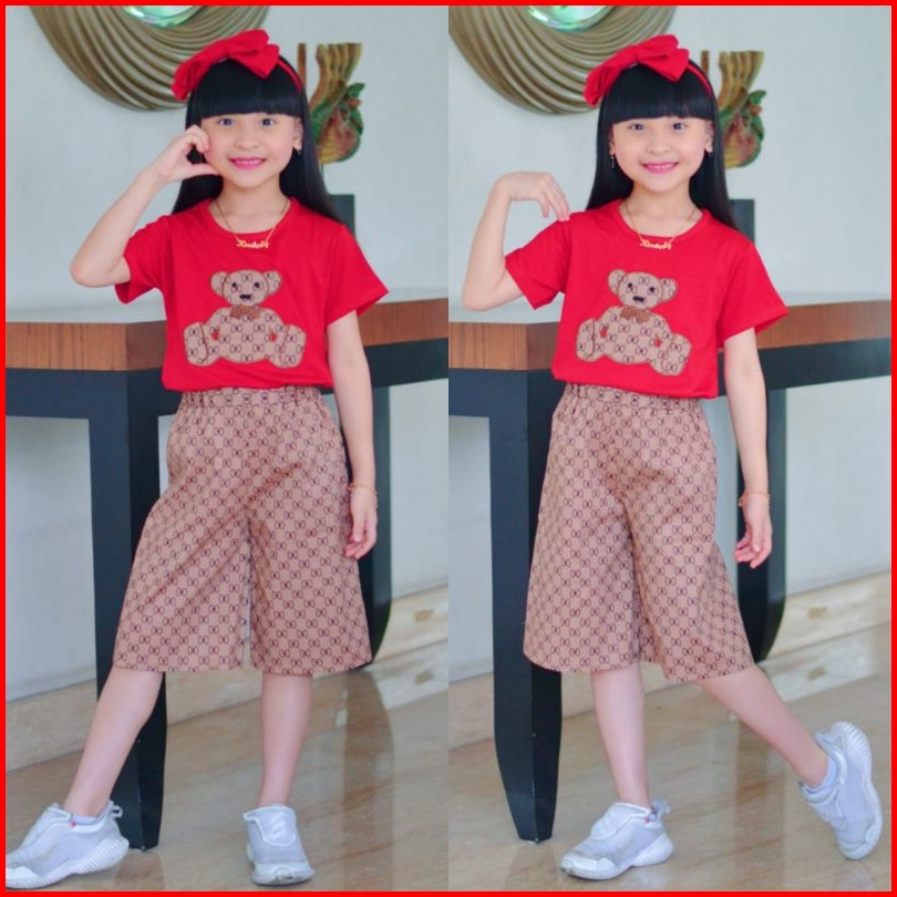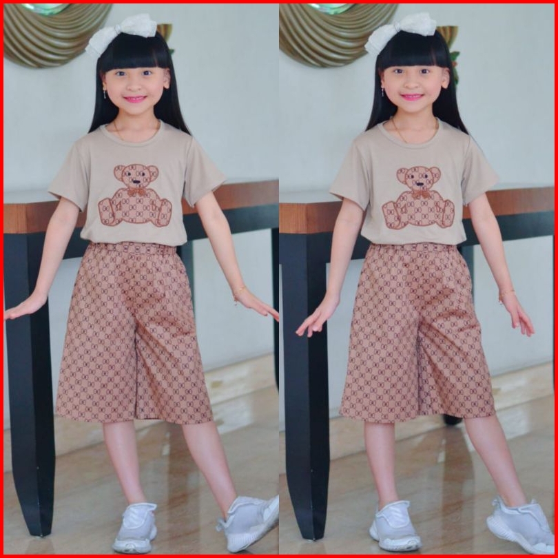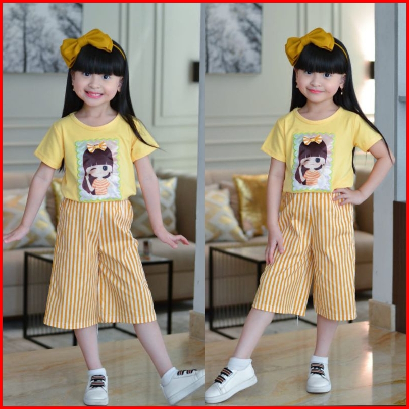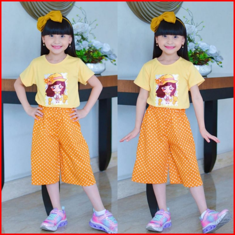 Setelan Kulot Anak Perempuan Celana Kotak 4-10tahun Baju Set Anak Perempuan Pakaian Anak Perempuan Baju Anak Perempuan S