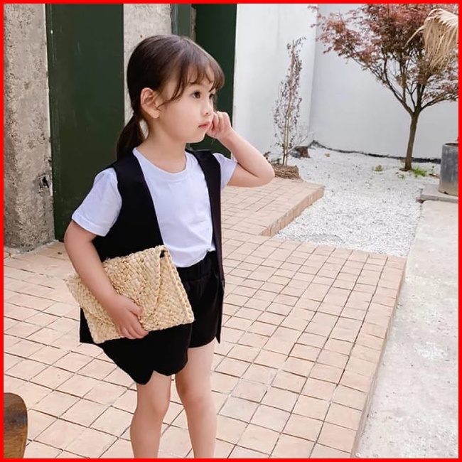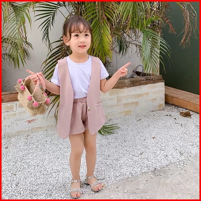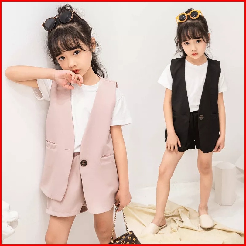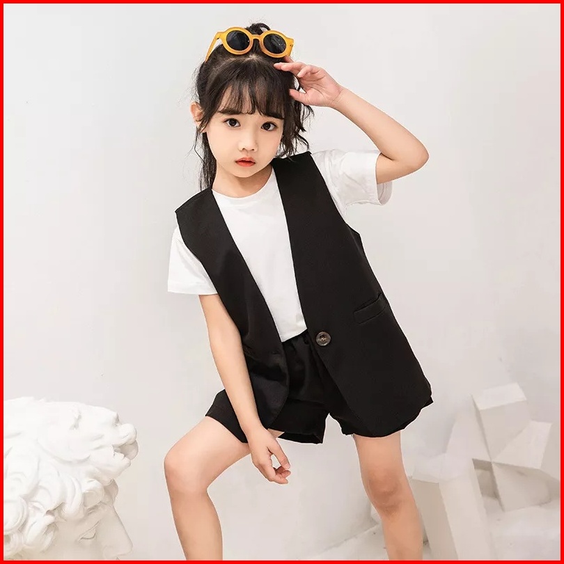 Yoona Girl Set Baju Anak Perempuan Fashionable Korean Style 3 In 1 Vest Baju Lengan Pendek Celana Pendek Casual Trendy U