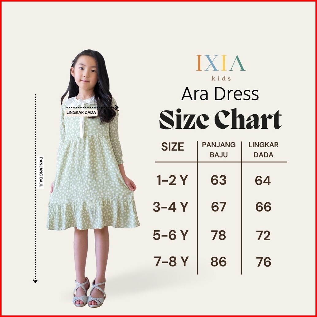 Ixia Kids Ara Dress Baju Dress Anak Perempuan 1-8 Tahun
