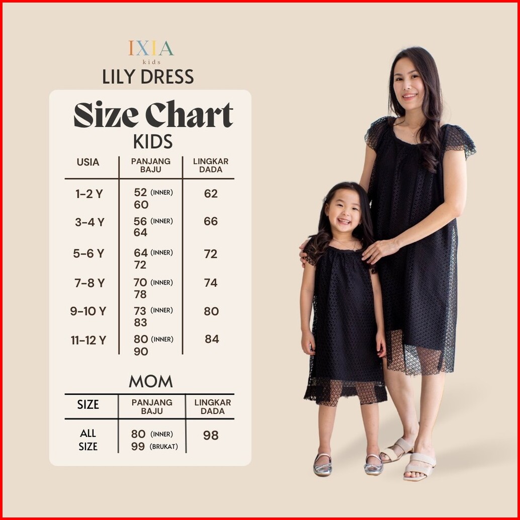 Ixia Kids Lily Dress Baju Dress Couple Ibu Anak Perempuan 1-12 Tahun