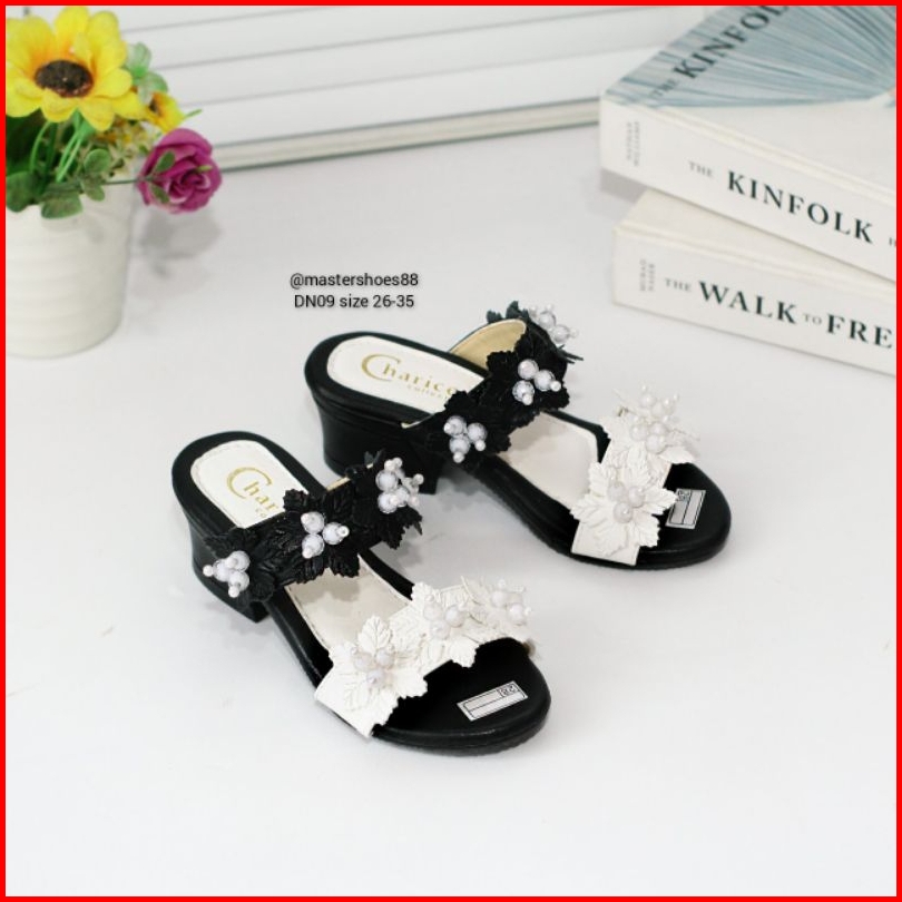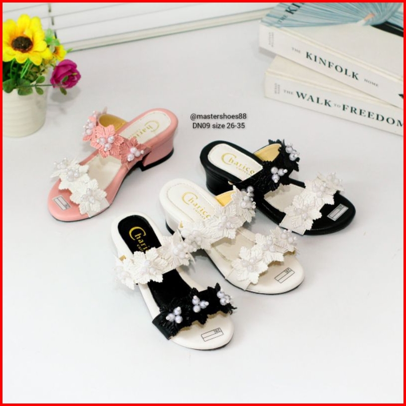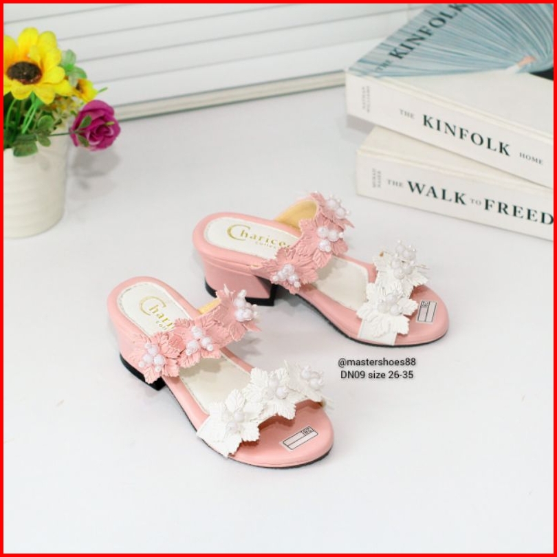 Master Dn09 - Terbaru Sand Selop Anak Perempuan Variasi Bunga Sendal Heels Fashion Anak Sandal Pesta Anak Anti Slip