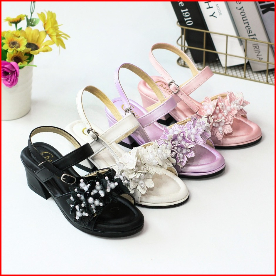 Sepatu Pesta Anak Perempuan Sandal Hak 3cm Kondangan Ringan Empuk Tali Belakang Sol Anti Slip