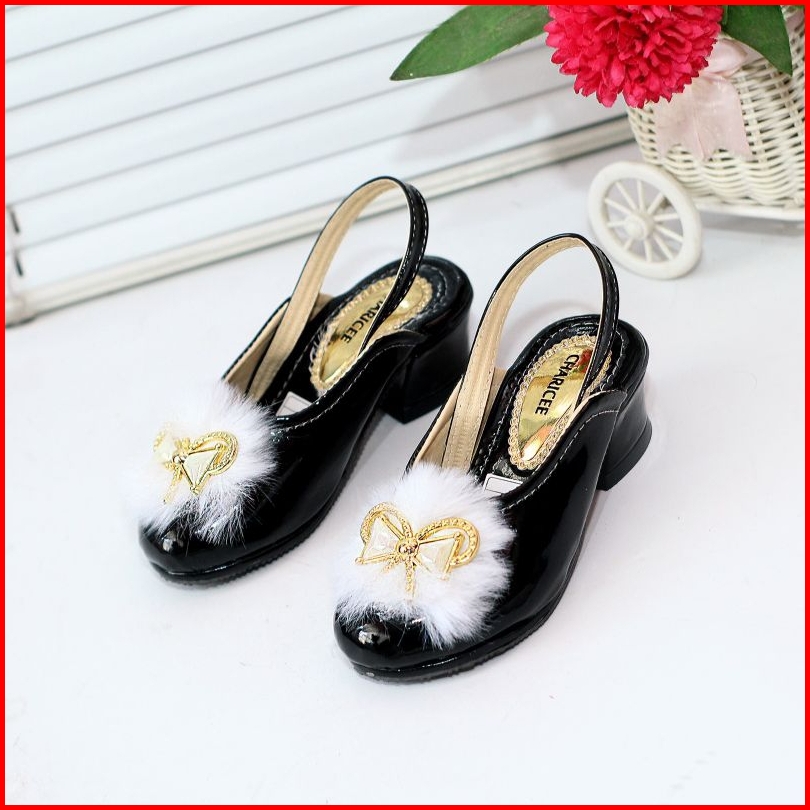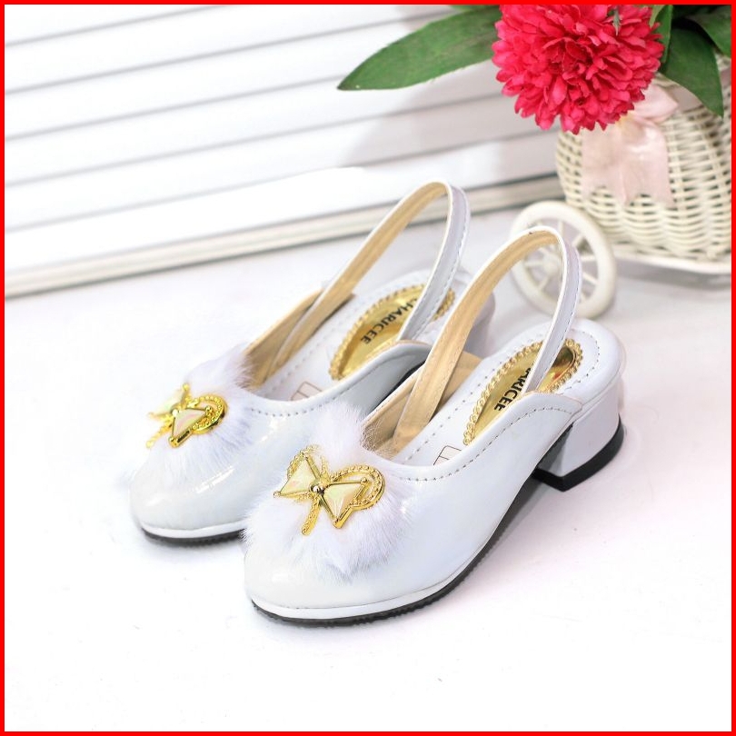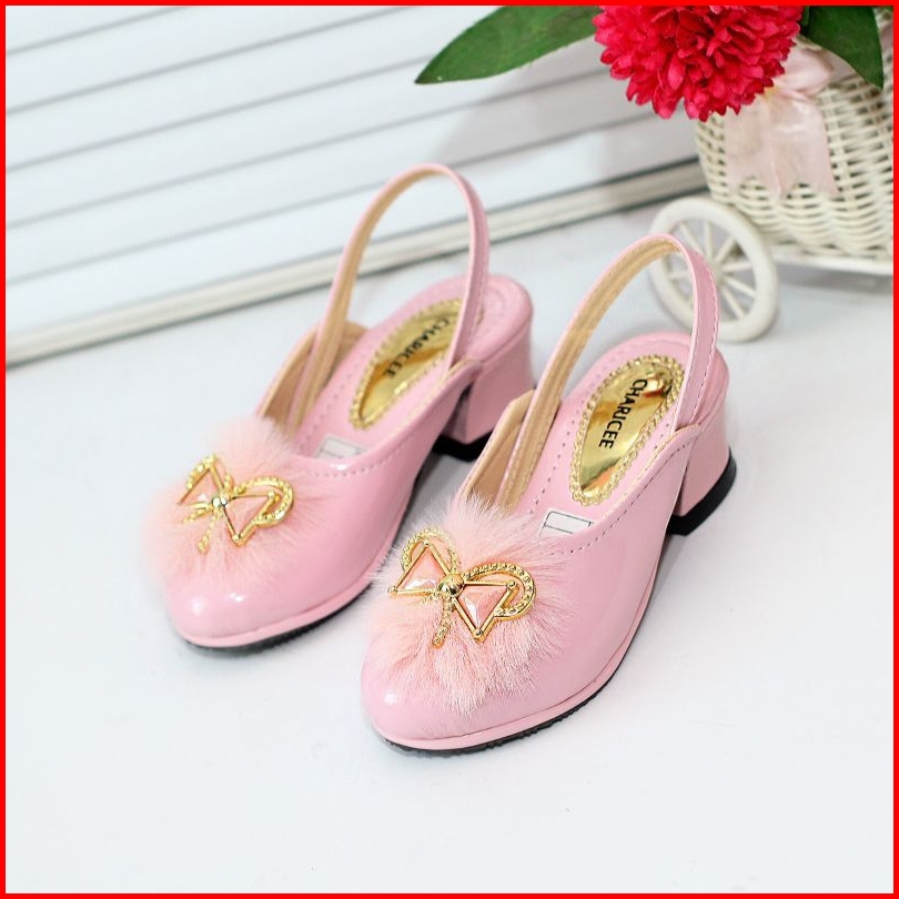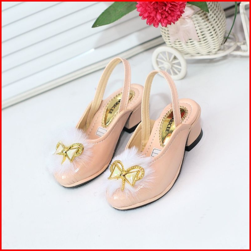 Sandal Anak Perempuan Hak Bapau Motif Bulu Pita