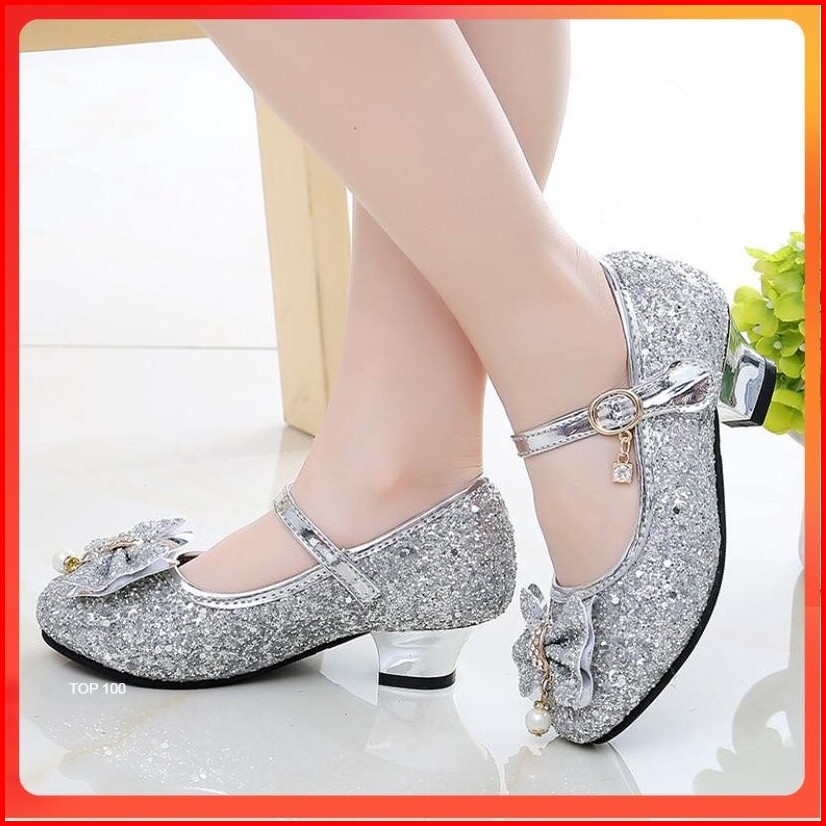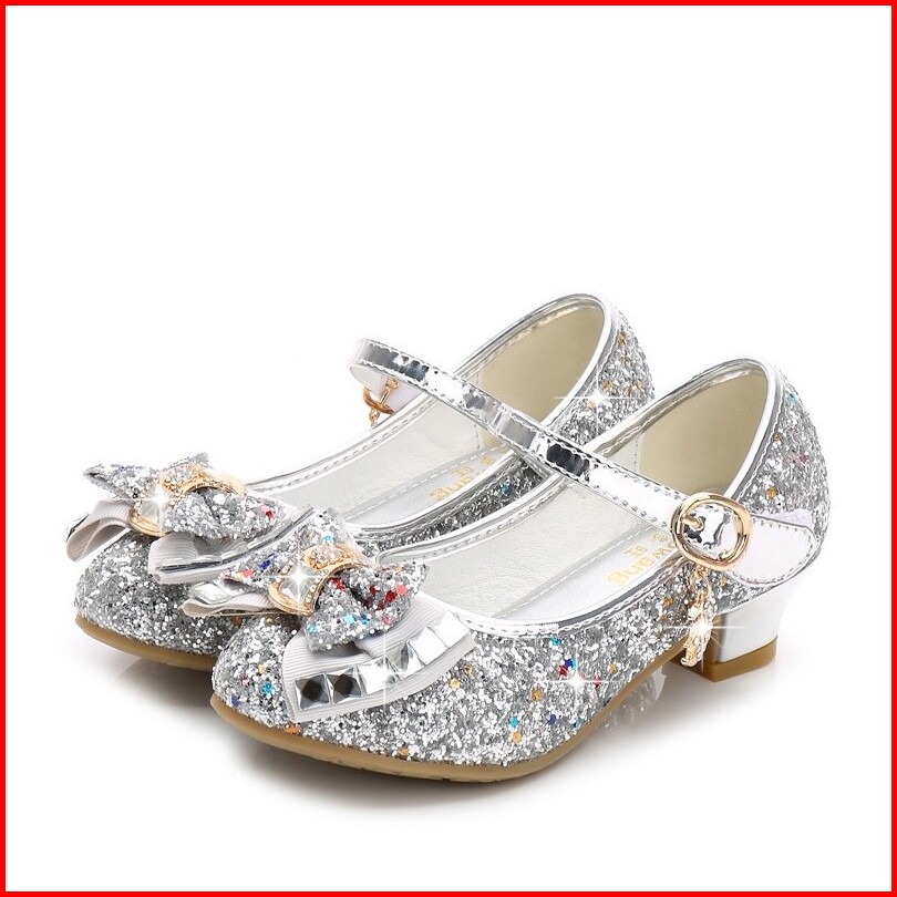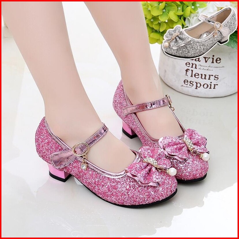 Sepatu Kulit Kupu-kupu Malam Putri Sepatu Glitter Tari Anak-anak Perempuan Hak Tinggi Ikatan Simpul Berlian Anak-anak Se