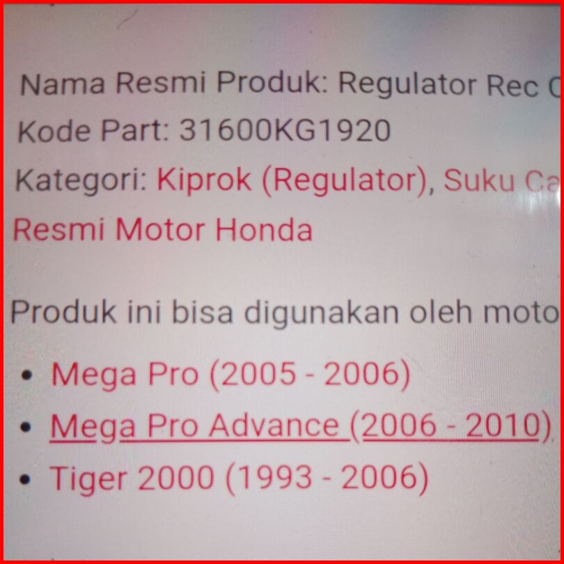 Kiprok Regulator Megapro New Monoshock Tiger Lama New Revo Original Ori Asli Honda Ahm 31600-kg1-920