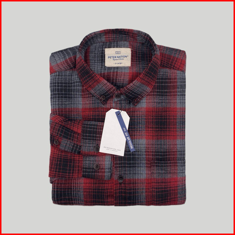Peternation Kemeja Flanel Pria Wool Basic Panjang Regular Fit