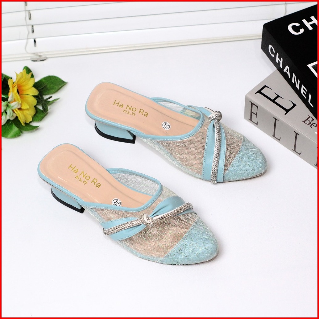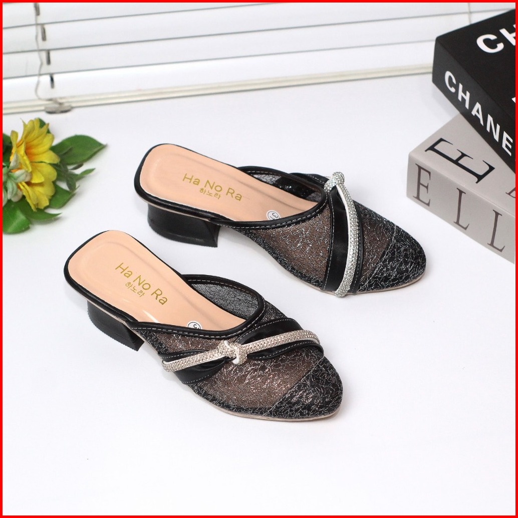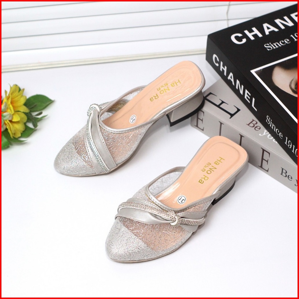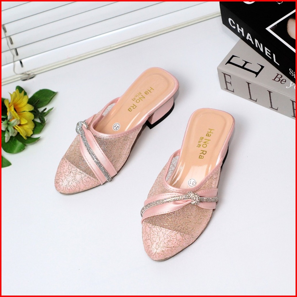 Vynscollection Sandal Hak Anak Perempuan Brukat Jala Heels 3 Cm Selop Kitten Heels Tali Silang Glitter Terra