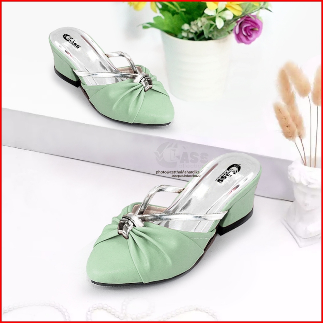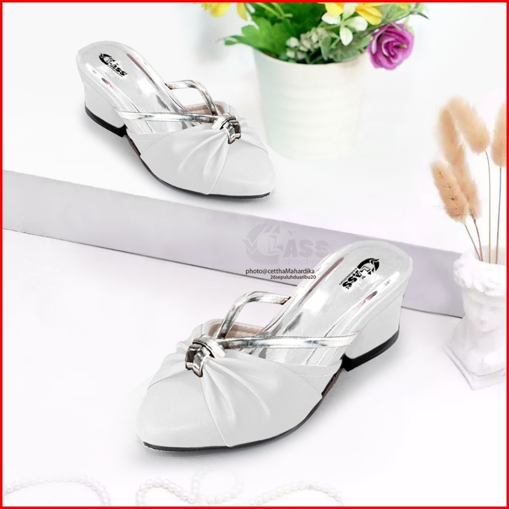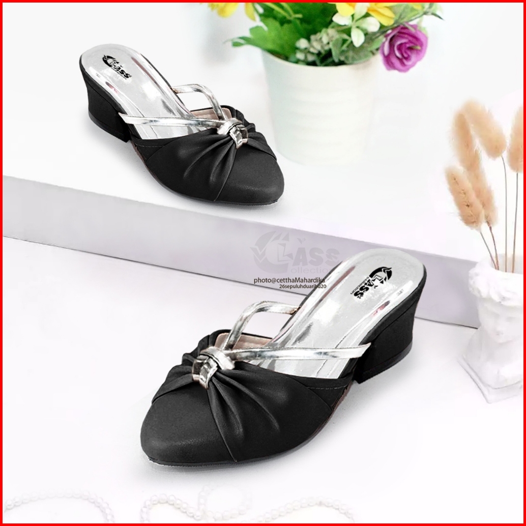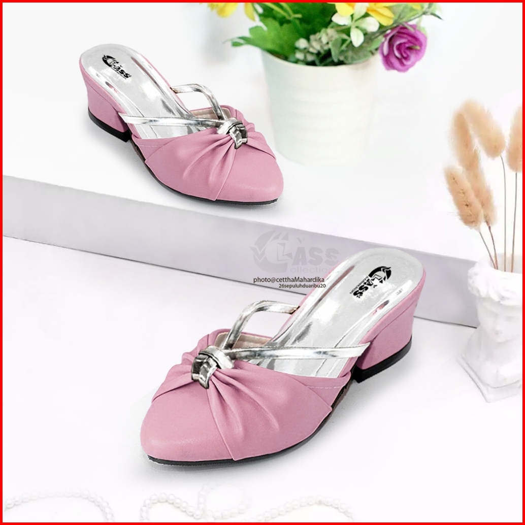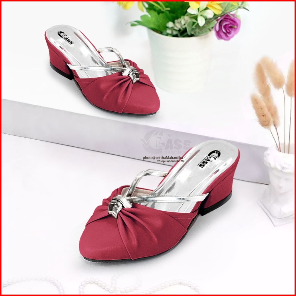 Sandal Anak Perempuan Pesta Hak 3cm Motif Kerut Glossy Selop Sol Karet Anti Licin