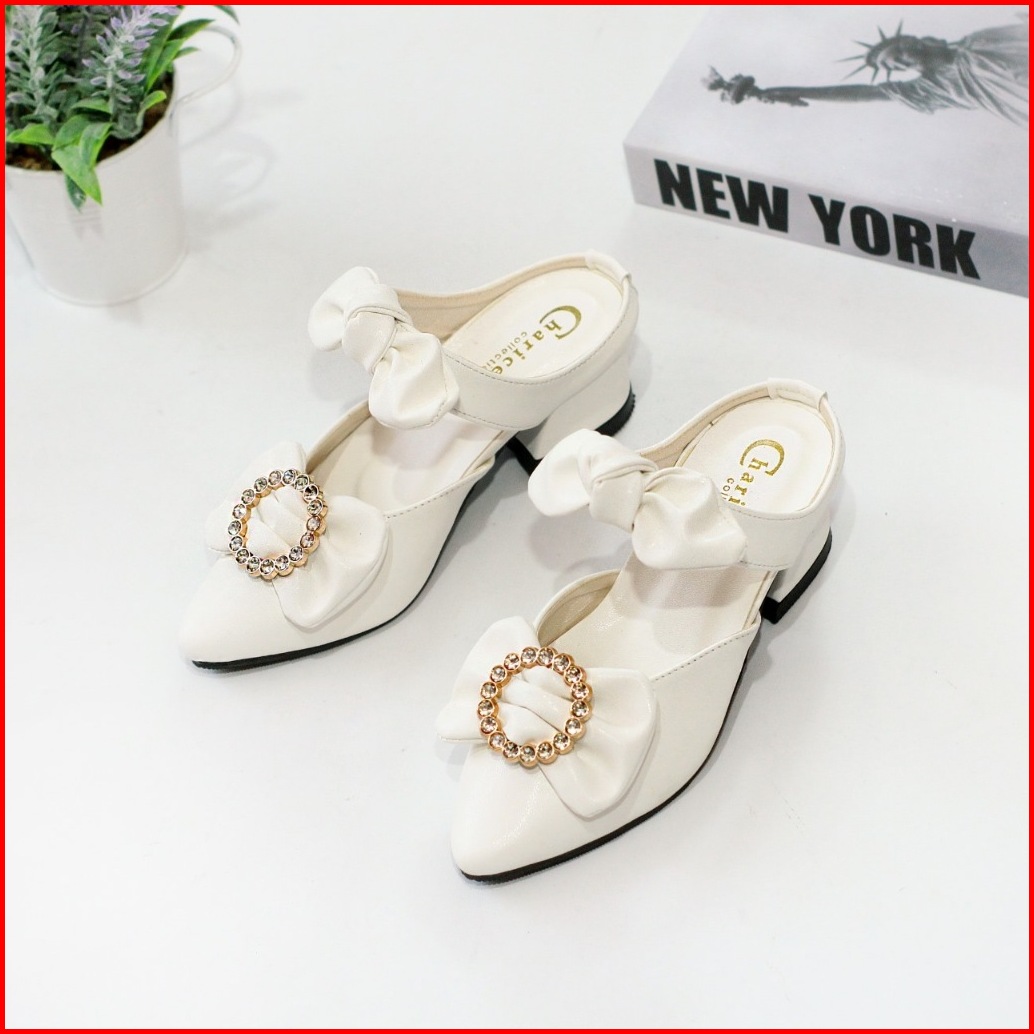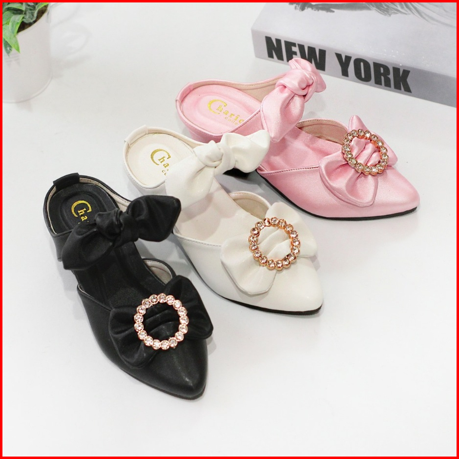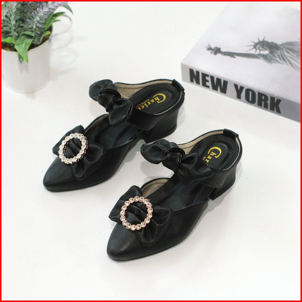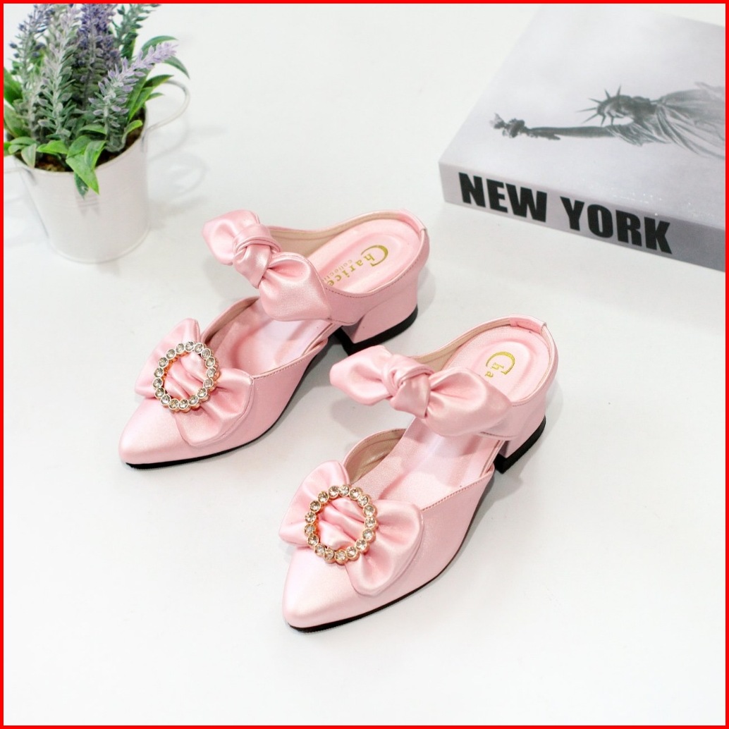 Sepatu Pesta Anak Perempuan Hak 3cm Selop Empuk Tali Pita Anti Slip