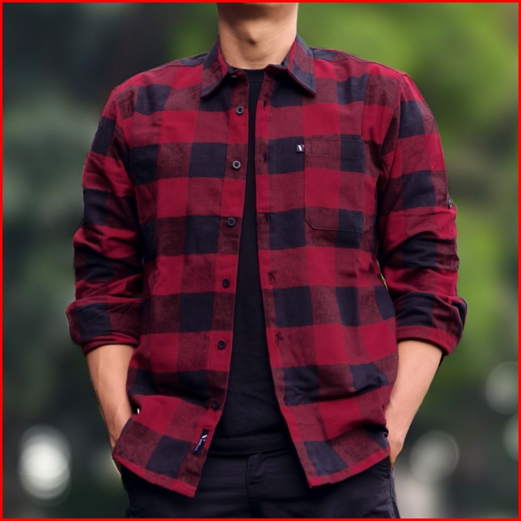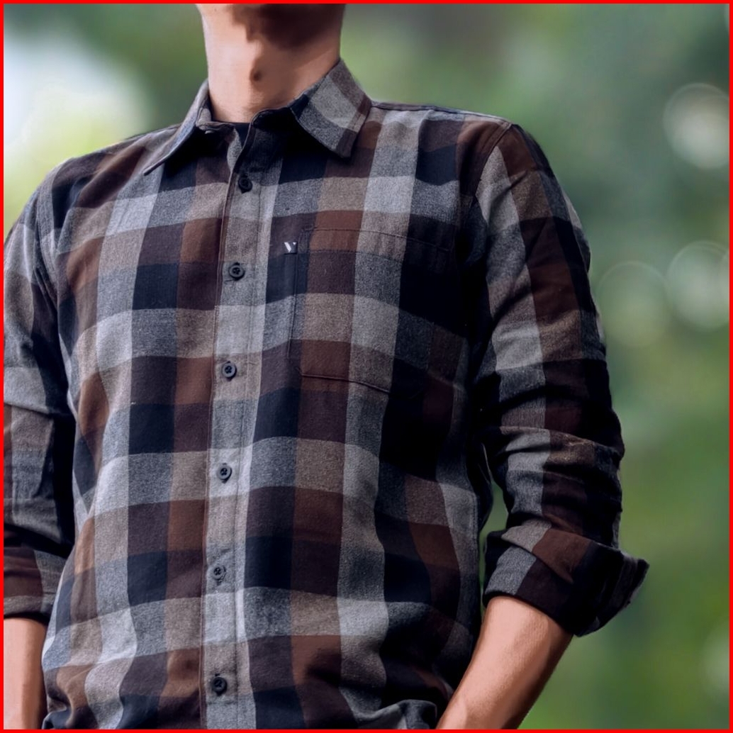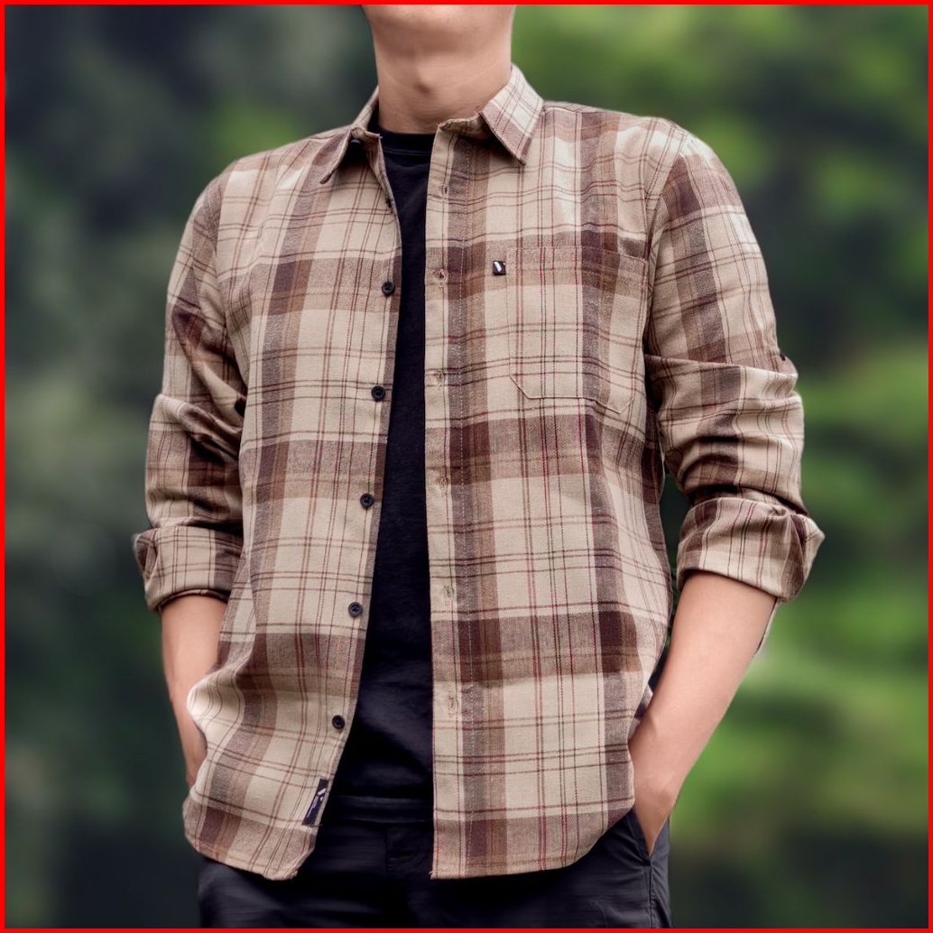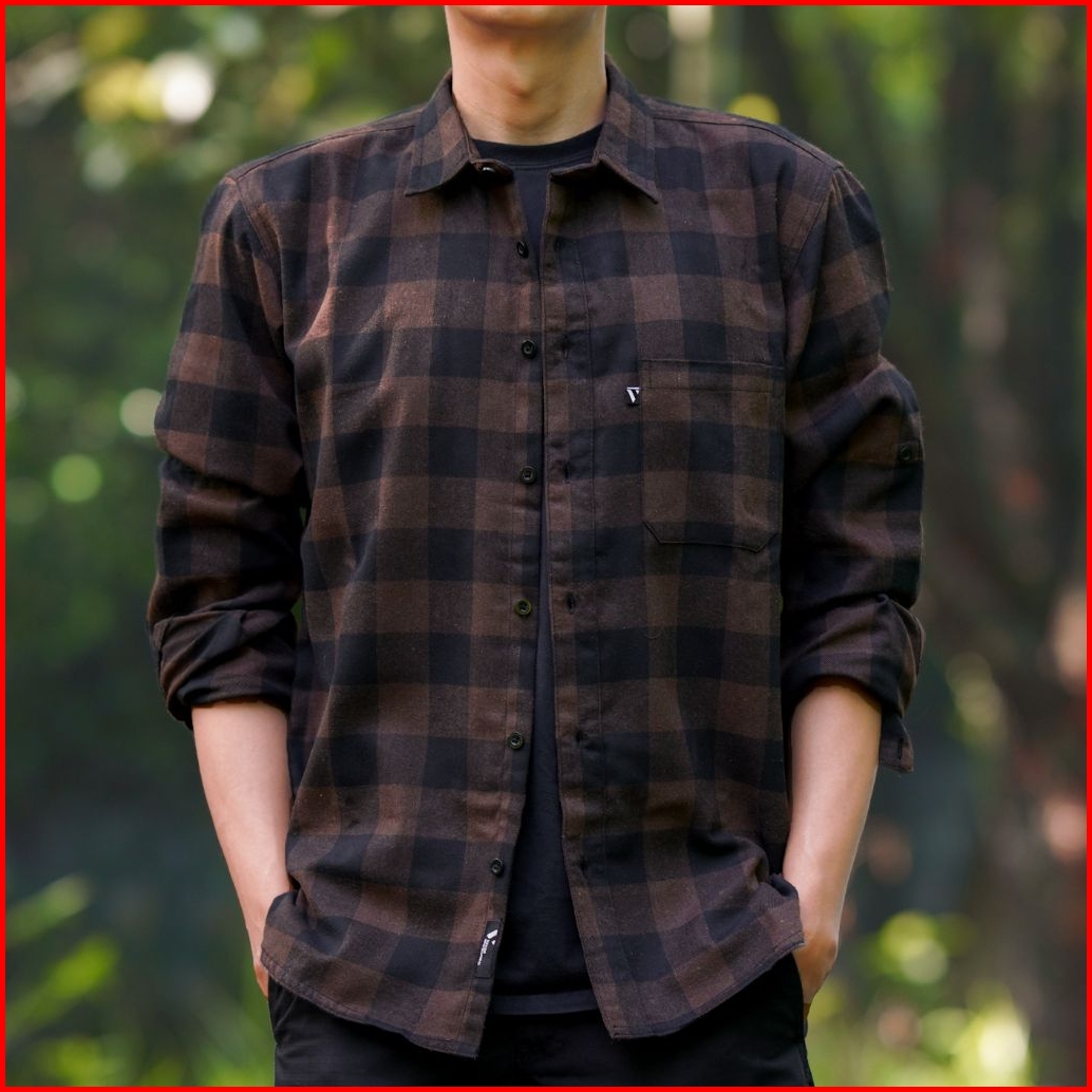 Kemeja Flanel Kotak Kotak Cokelat Pria Lengan Panjang Vuxor Flannel Shirt Outdoor