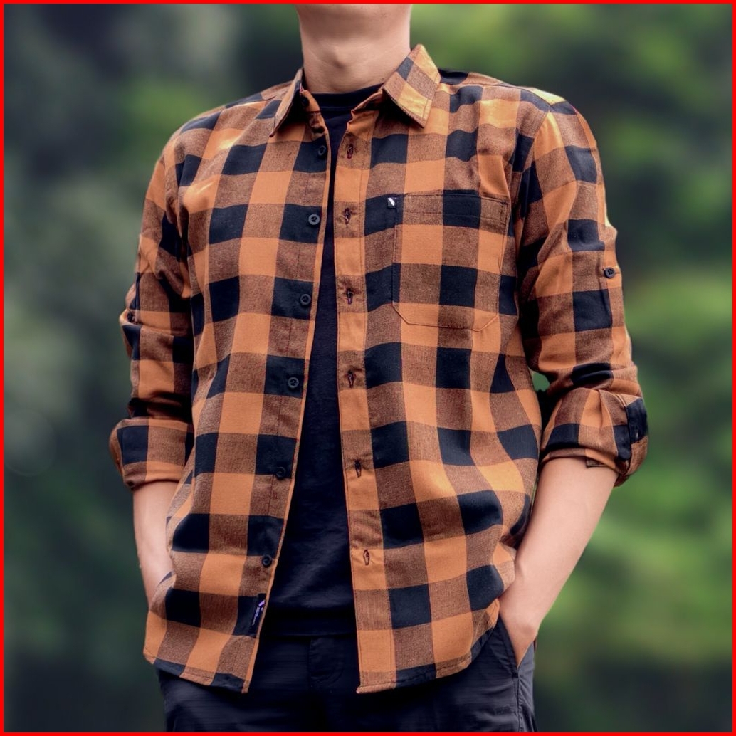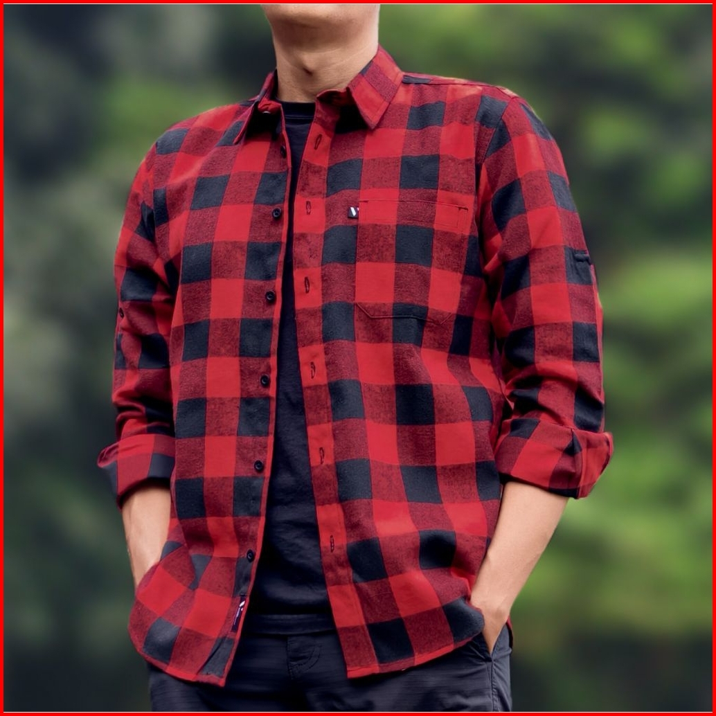 Kemeja Flanel Kotak Kotak Biru Lengan Panjang Outdoor Vuxor Trv137