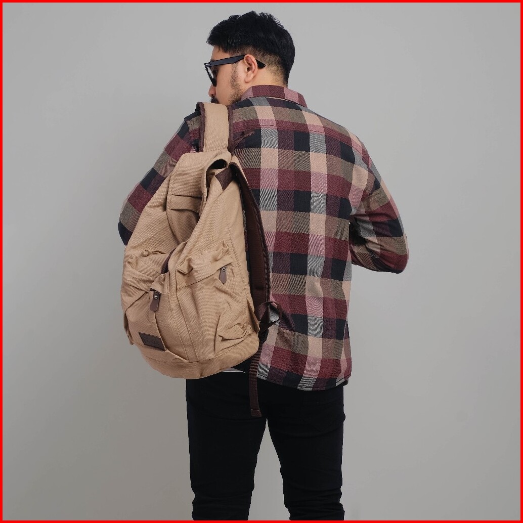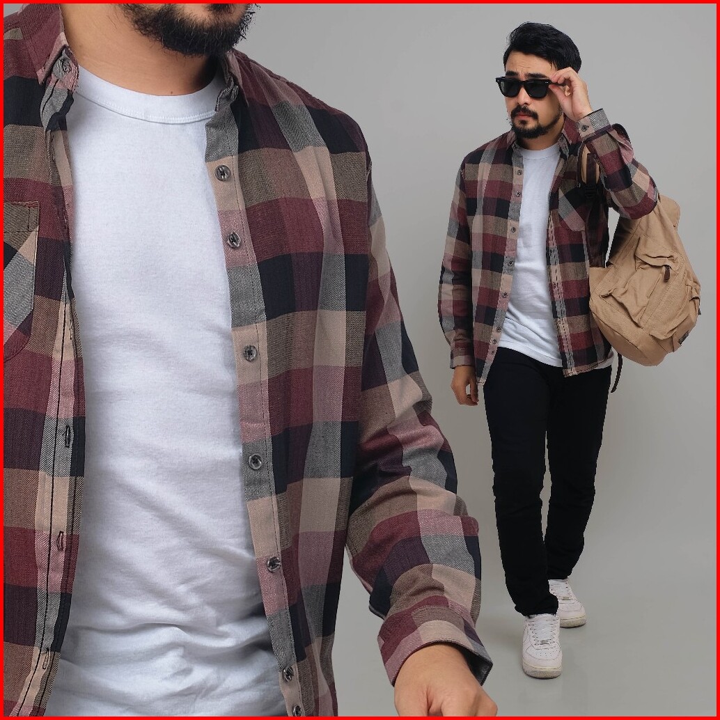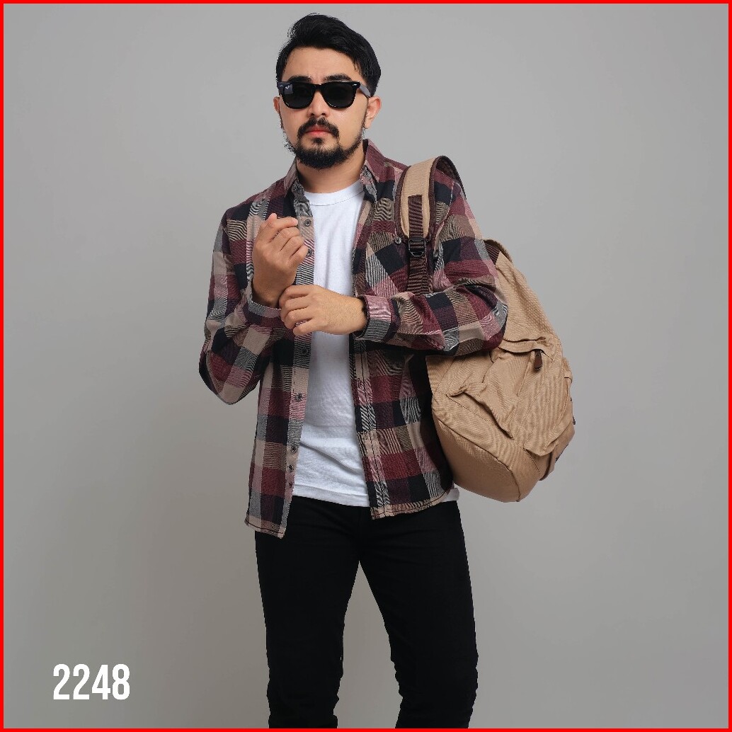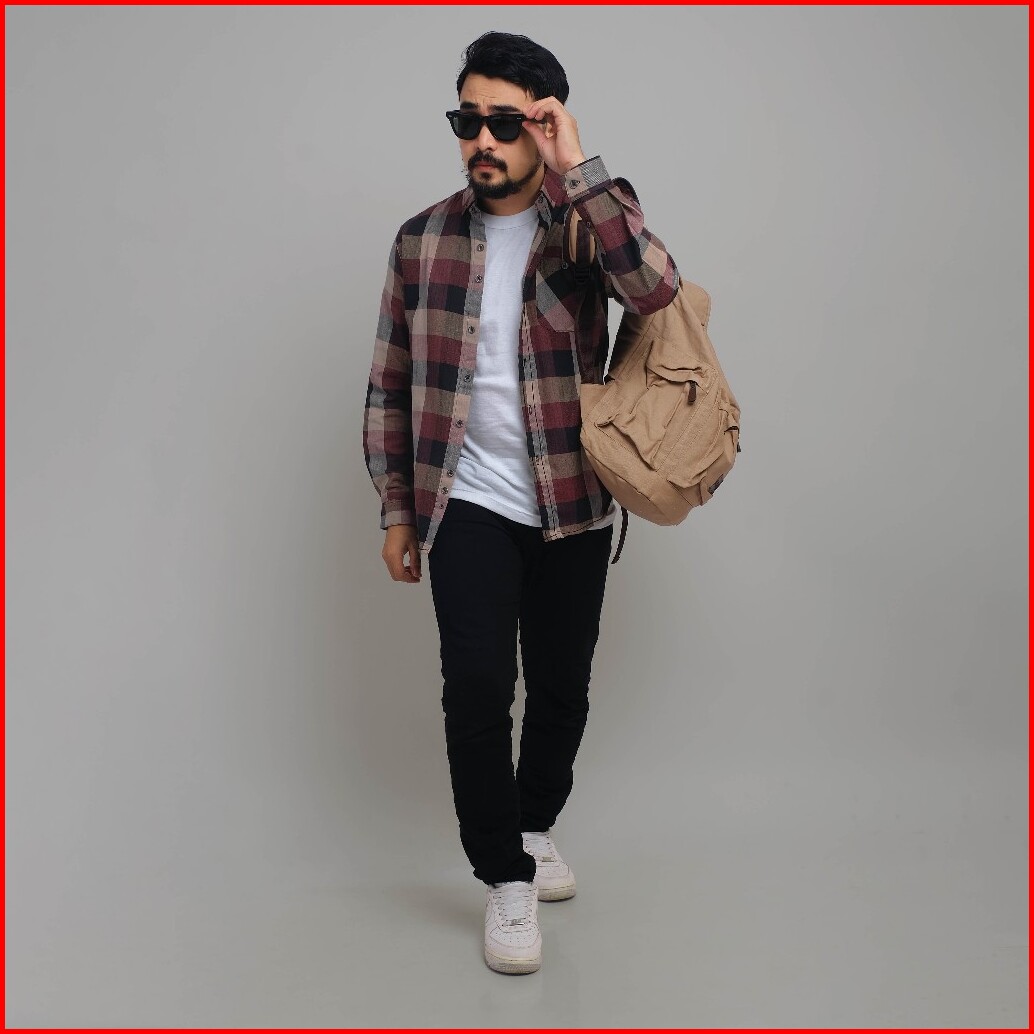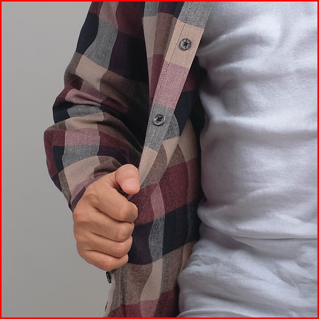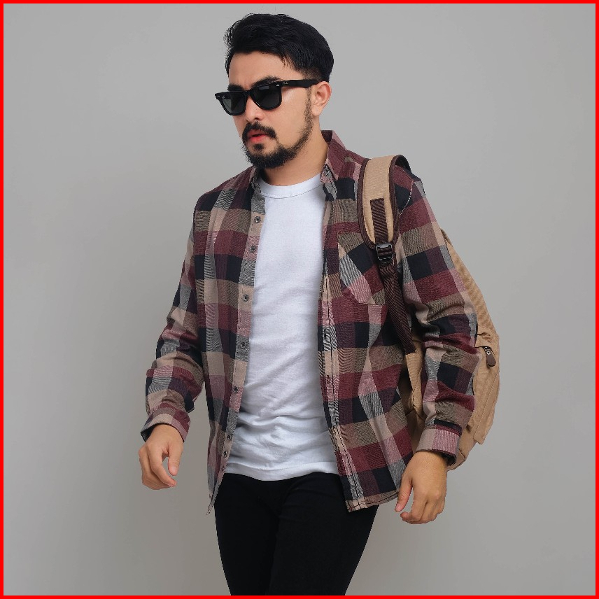 Dgm Kemeja Pria Flanel Lengan Panjang Kotak Hitam-merah 2248