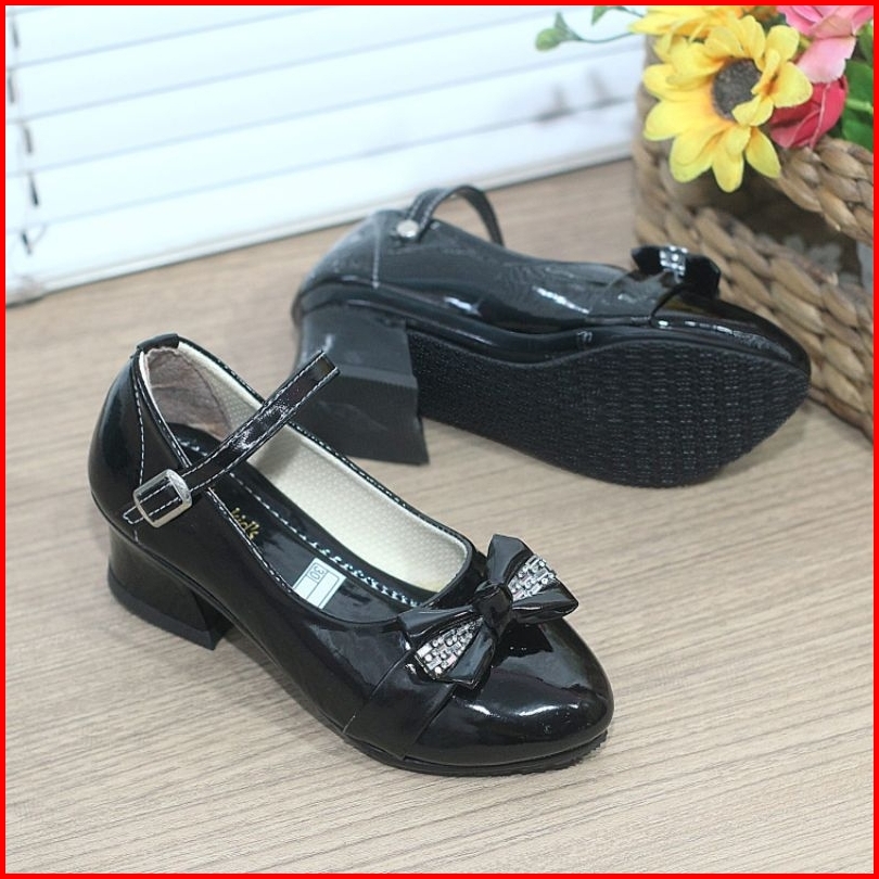 Sepatu Pesta Anak Perempuan Hak Tahu Motif Pita Tengah Kp-05